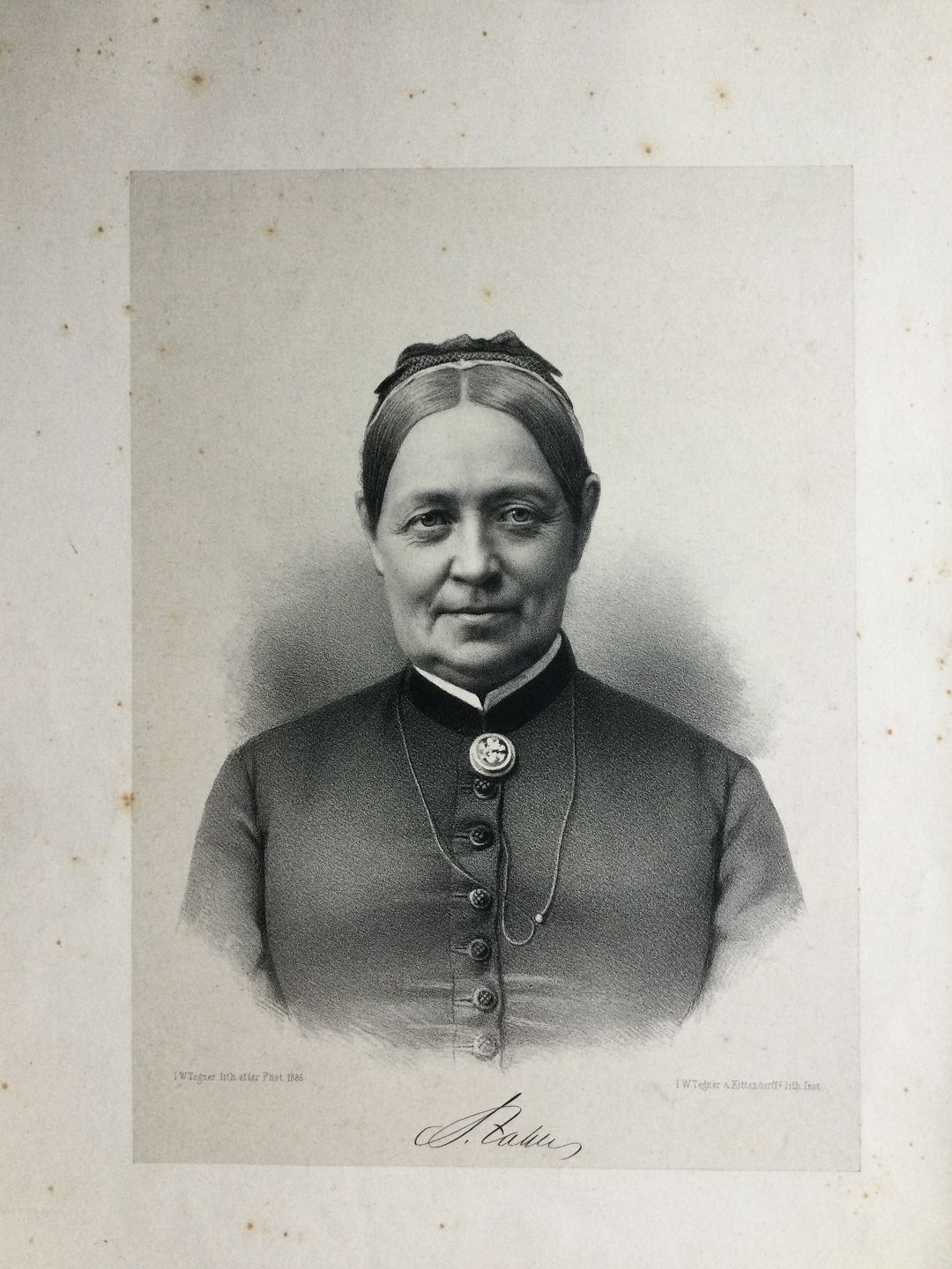 Litografi af Isac Wilhelm Tegner - Portræt af Pædagog og Pioner Natalia Zahle.