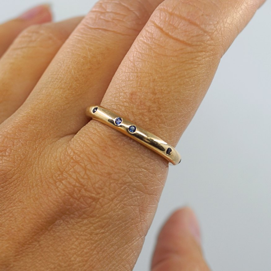 Carl Antonsen; Ring i 14 kt. guld, prydet med safirer Ring str. 58. Stemplet "CA 585".