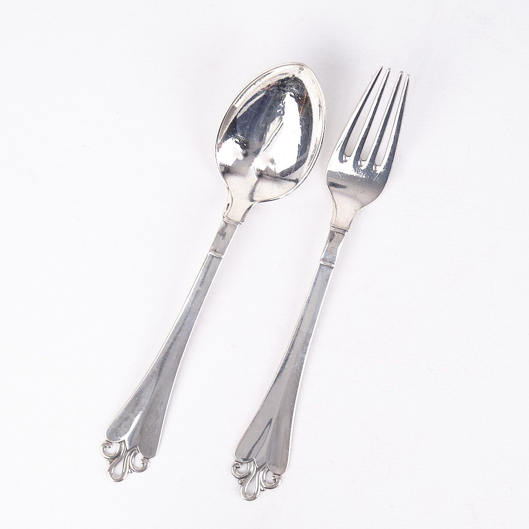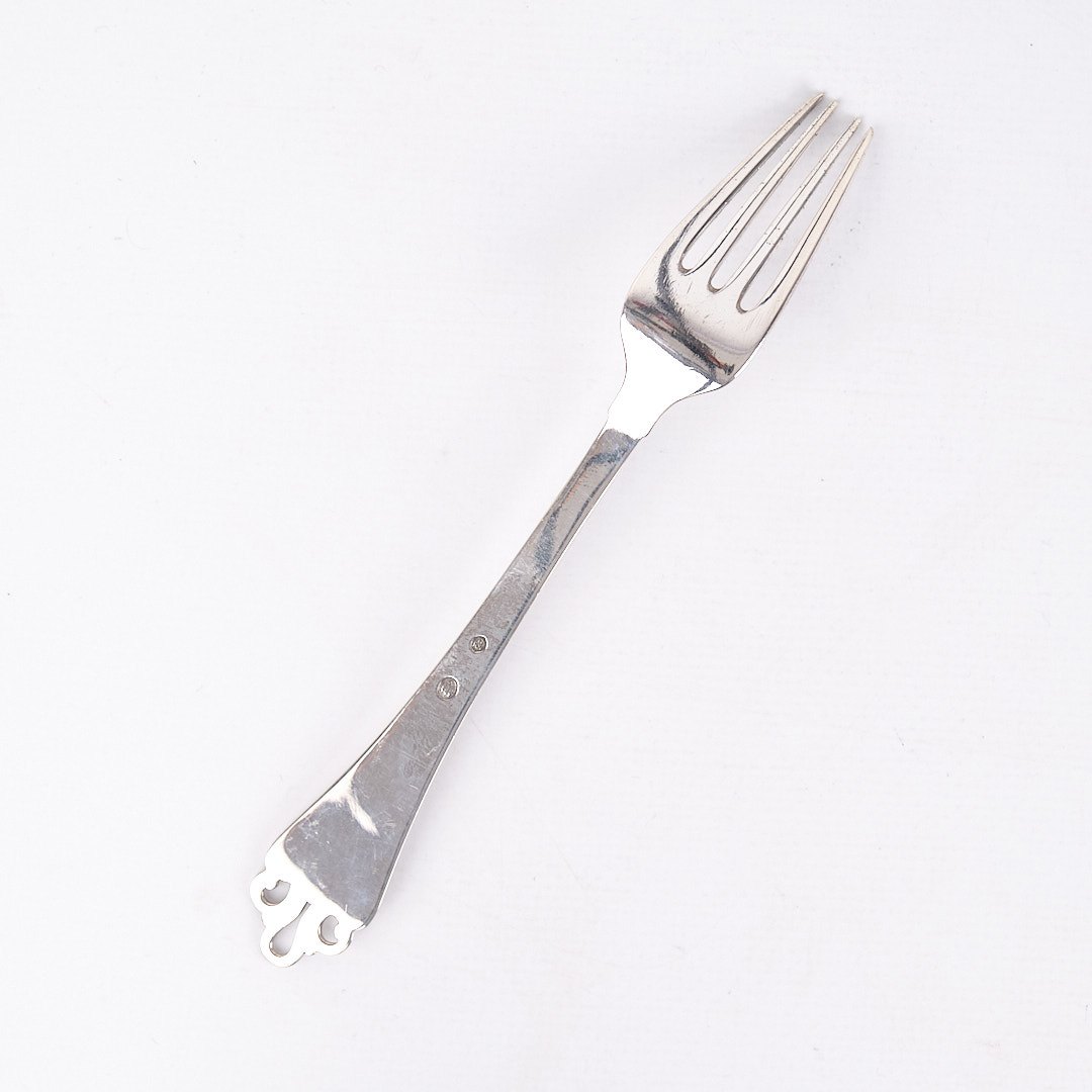 Middagsgaffel af mønstret H.C Andersen designet af Sofus Sørensen i 1930 i anledning af digterens 125 års fødselsdag.