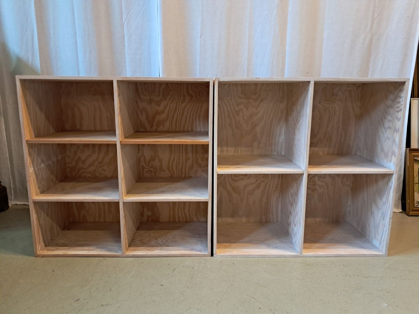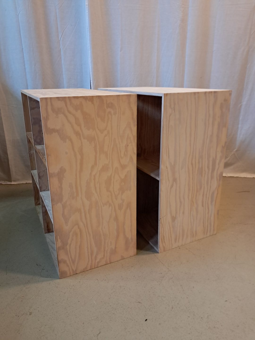 2 At-Bo reolkasser i krydsfiner, fra 2000erne.