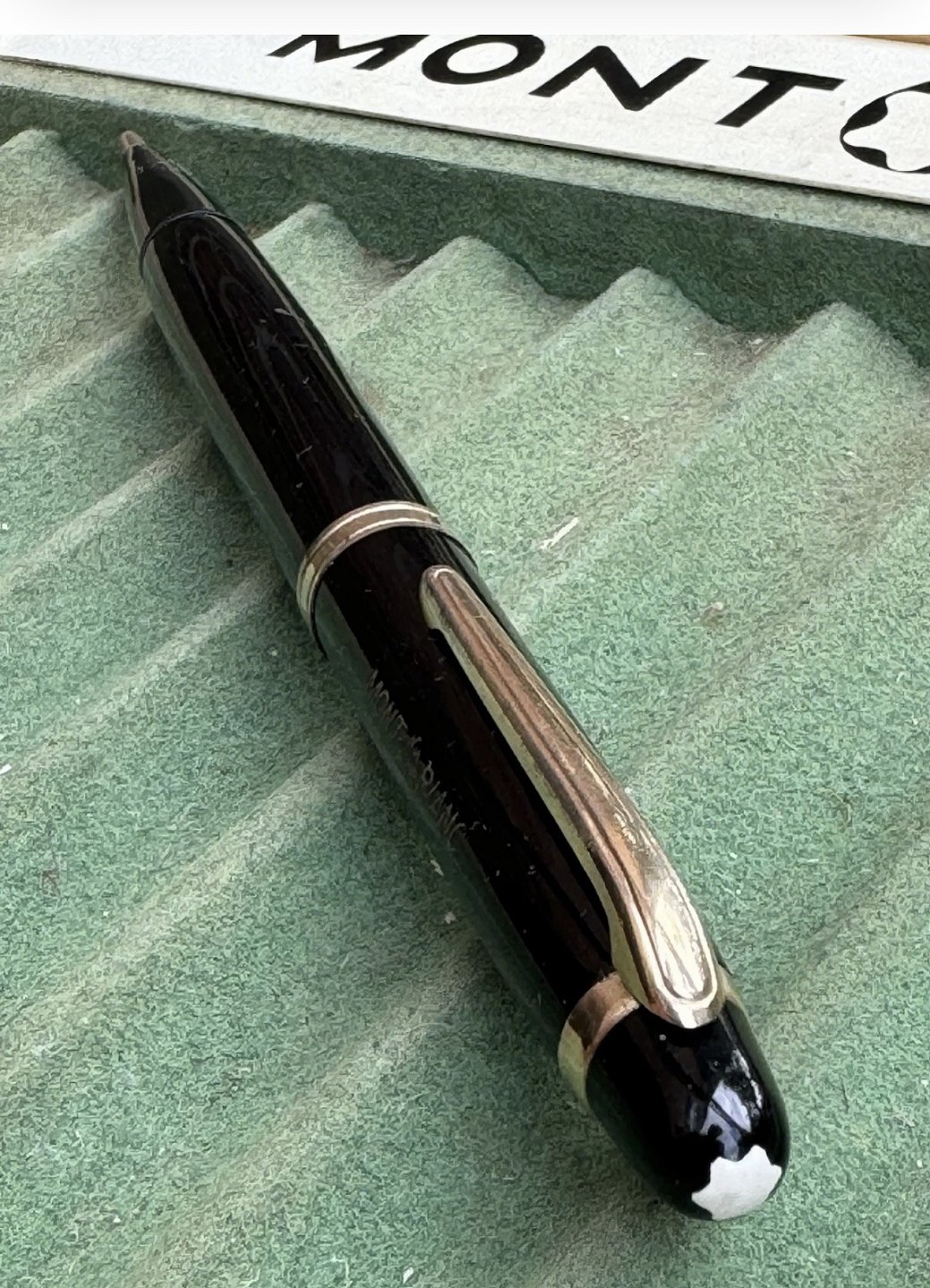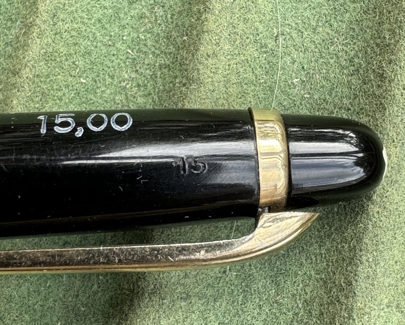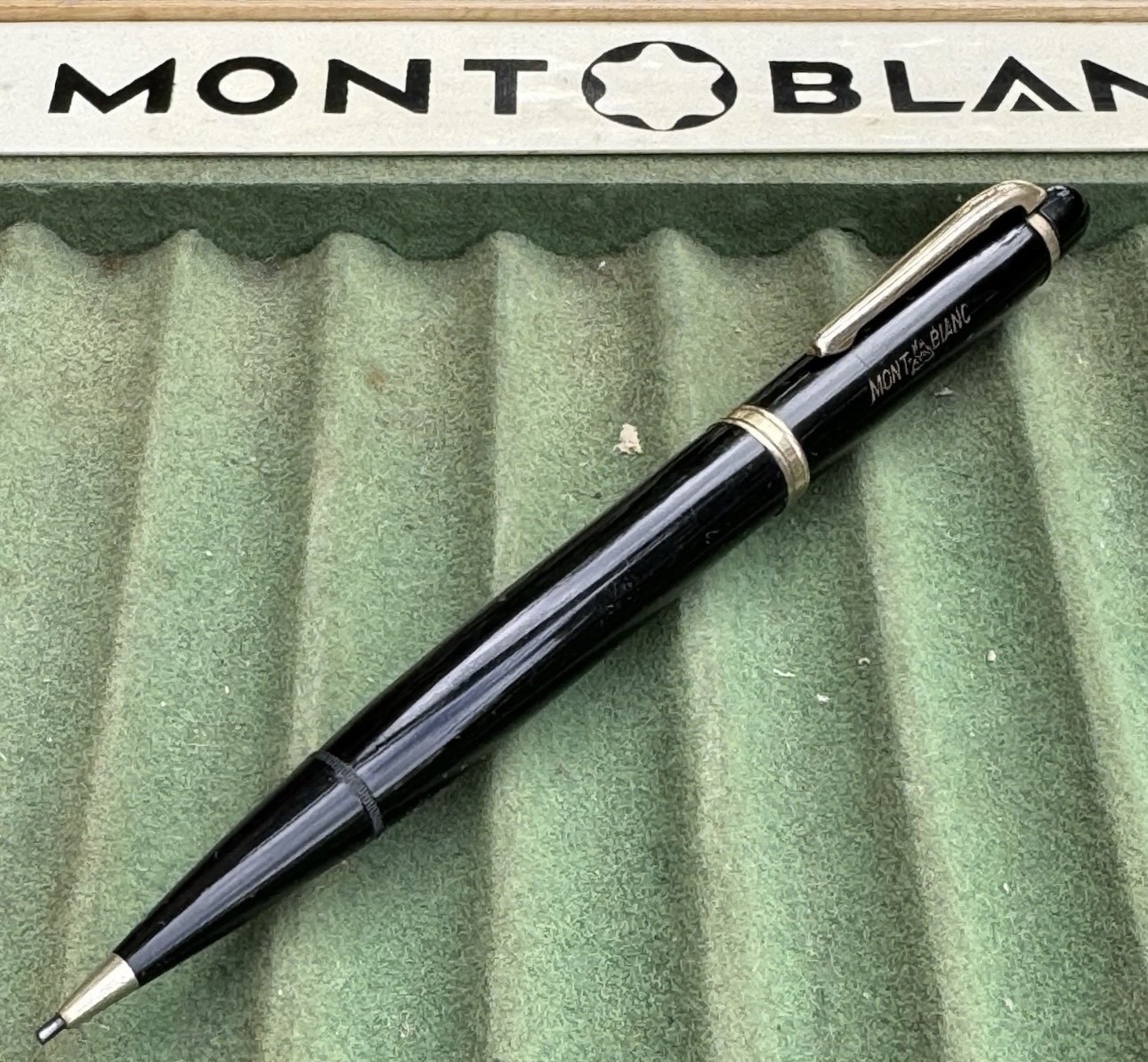 ALDRIG BRUGT - Vintage sort slank Montblanc no. 15 blyant fremstillet i Tyskland. Original dansk pris i d.kr. På toppen. 15,00 - kan nemt fjernes. Originalt "Guld" i MONTBLANC-bogstaverne på toppen. I fin stand. Ingen skader eller reparationer. Klar til brug. Mål: 13,5 cm