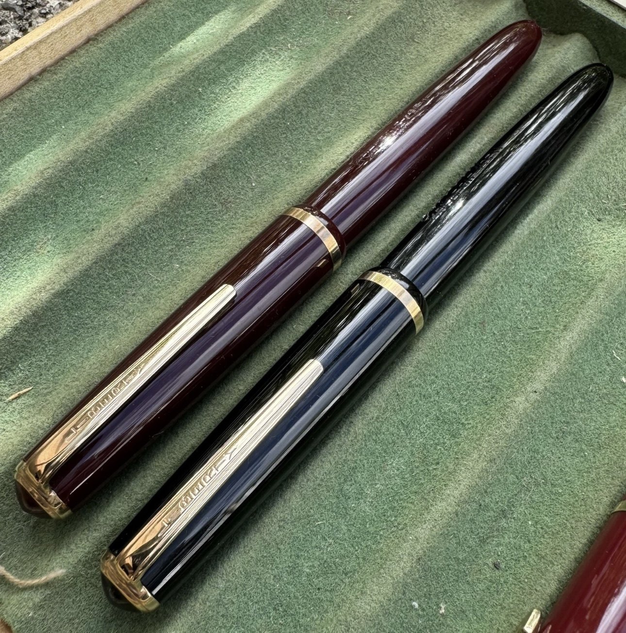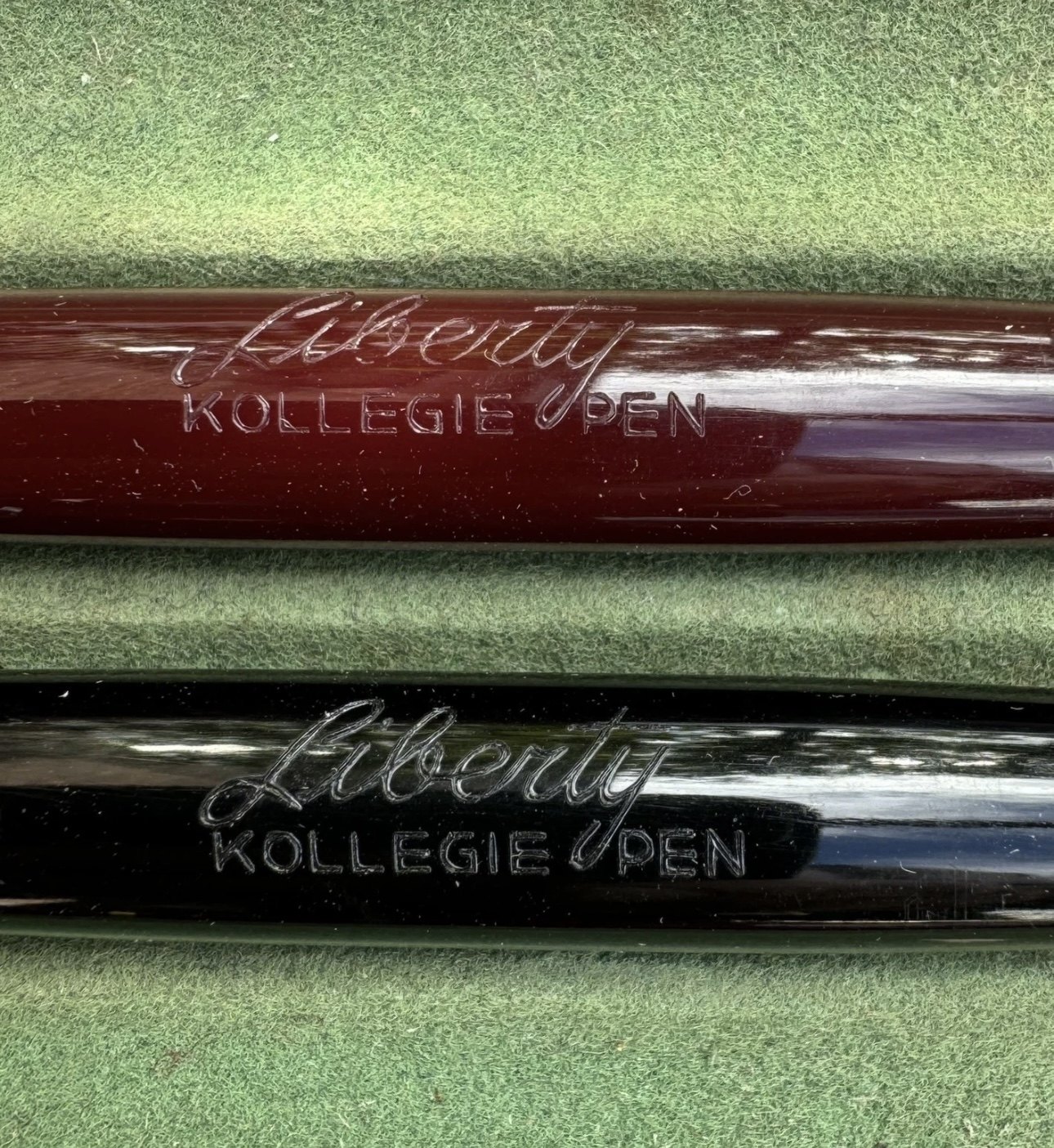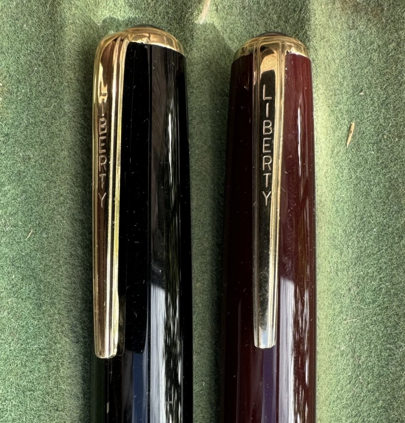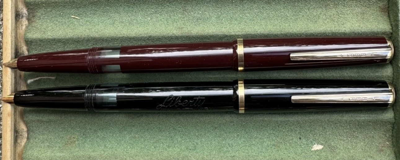 ALDRIG BRUGT - To Liberty 501 fyldepenne i sort og rød I PERFEKT UNEUGT STAND. Piston filler. Klar til brug. Fremstillet i 1950’erne. I god stand. Ingen skader eller reparationer. Mål: 13,2 cm lange.