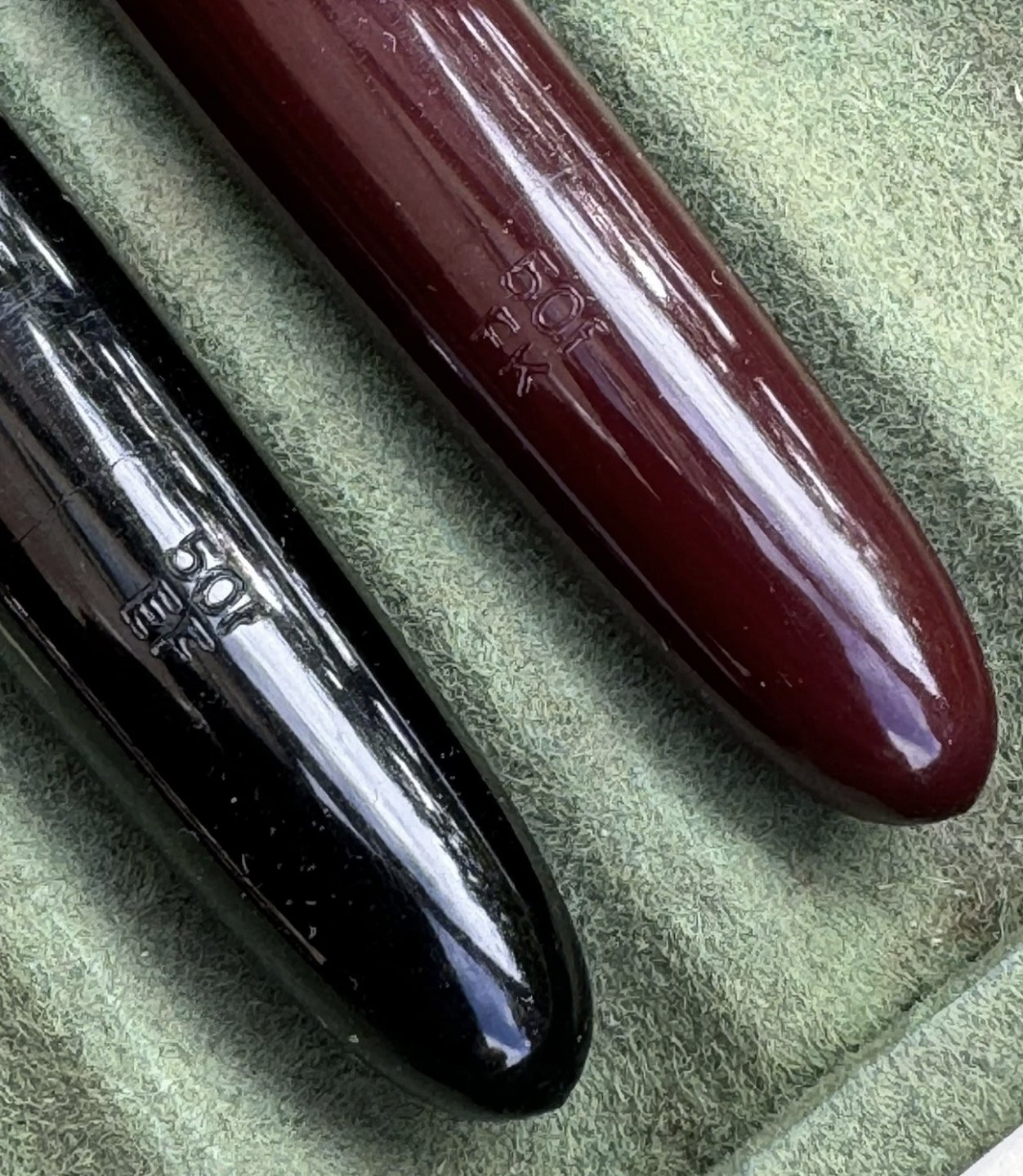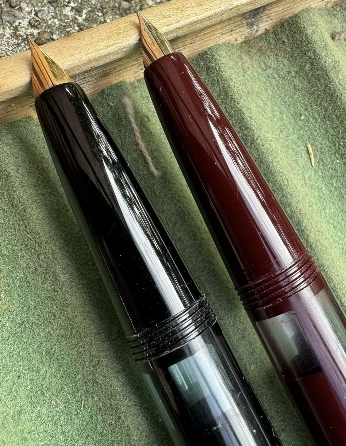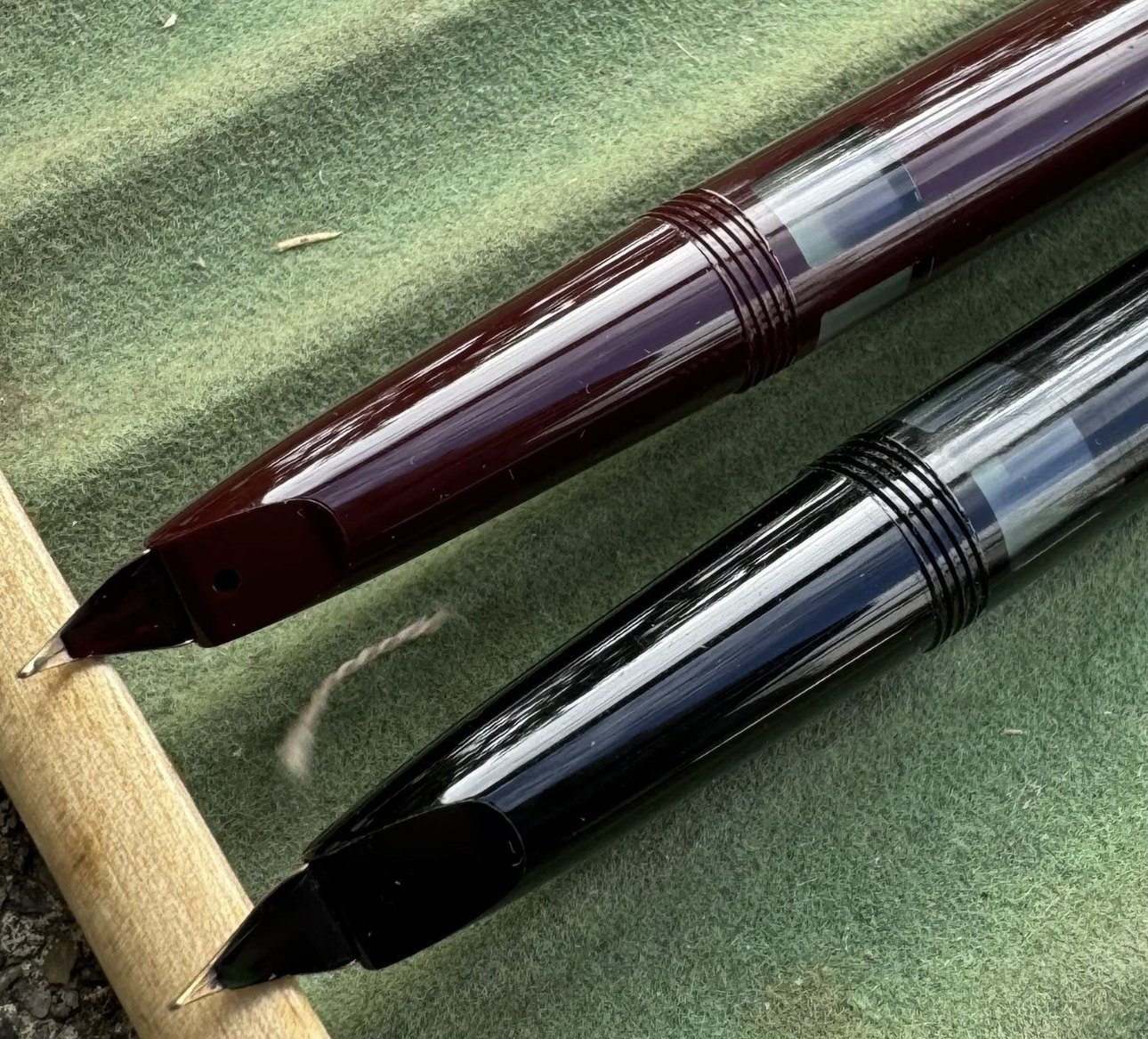 ALDRIG BRUGT - To Liberty 501 fyldepenne i sort og rød I PERFEKT UNEUGT STAND. Piston filler. Klar til brug. Fremstillet i 1950’erne. I god stand. Ingen skader eller reparationer. Mål: 13,2 cm lange.