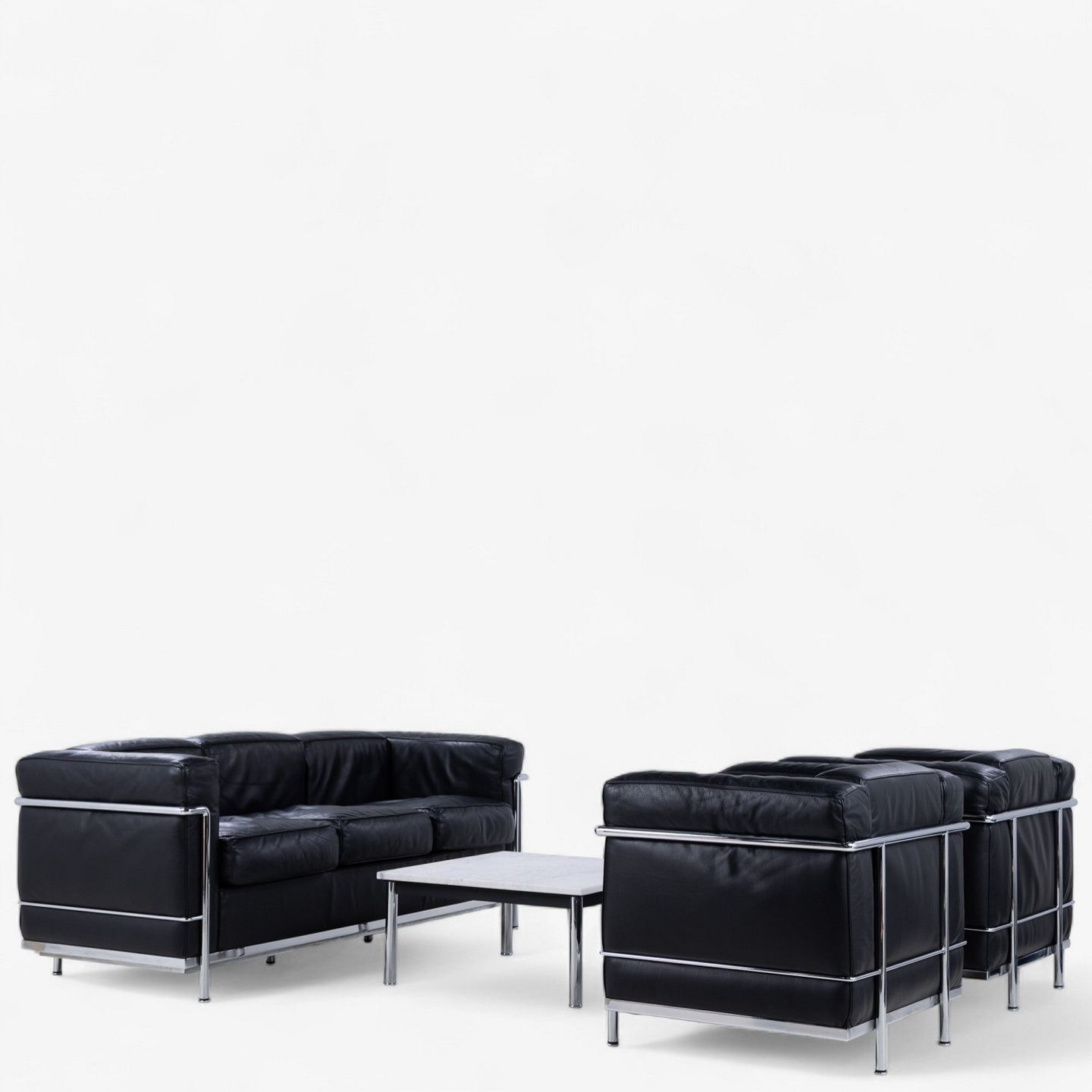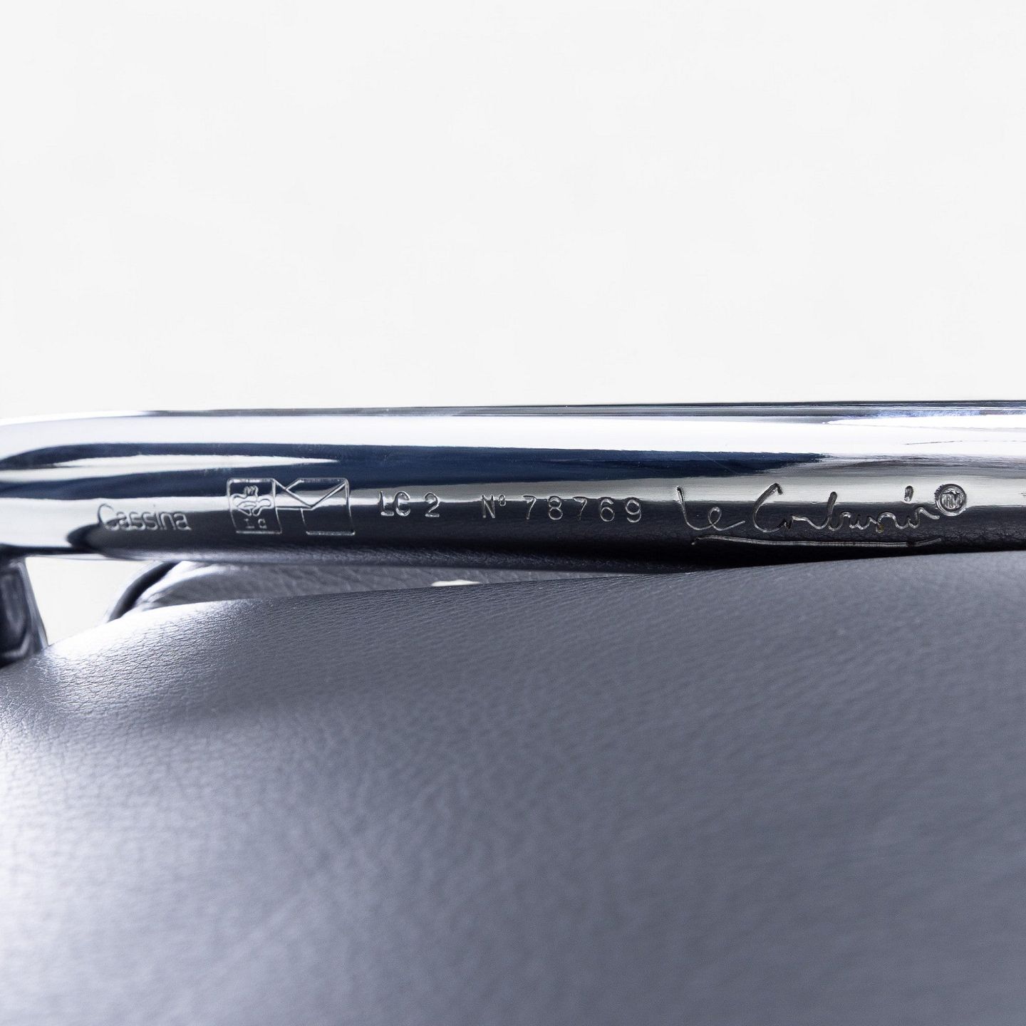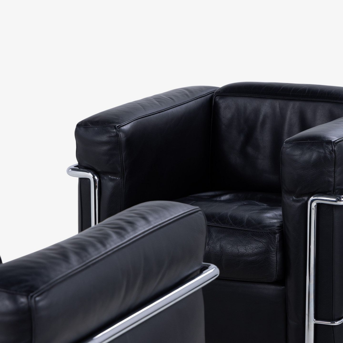 LC 2 - Lænestol i originalt sort læder med stel i stål. Stemplet fra producent.