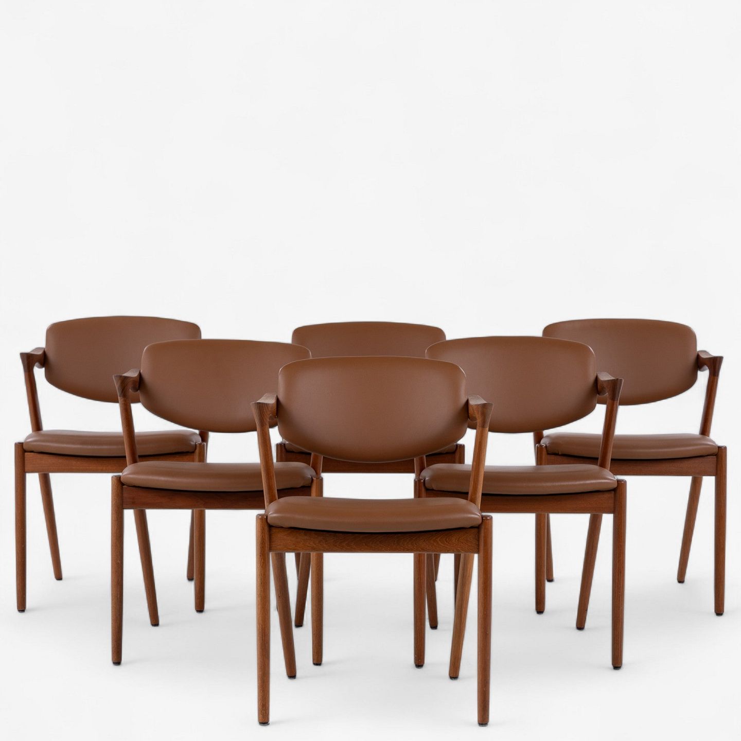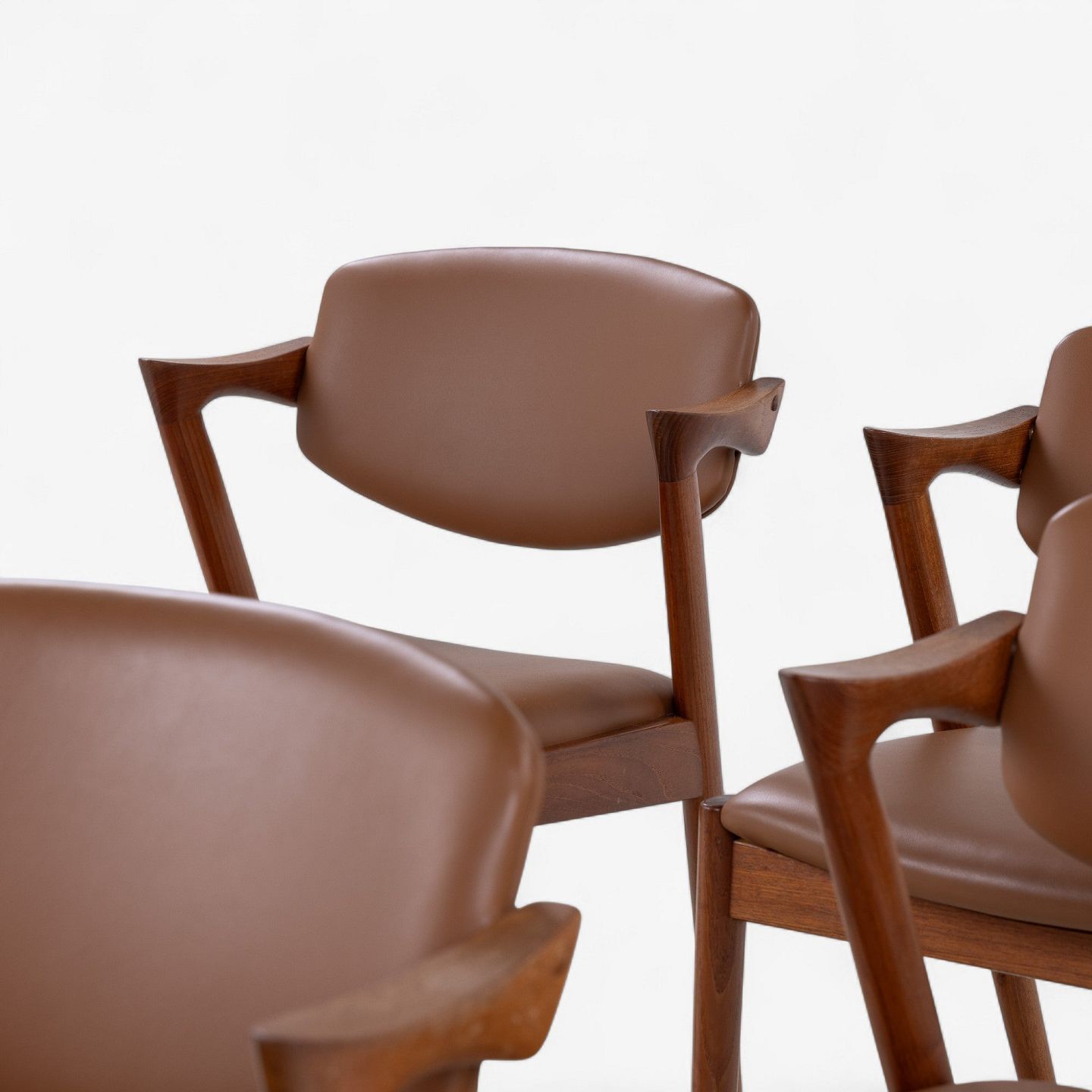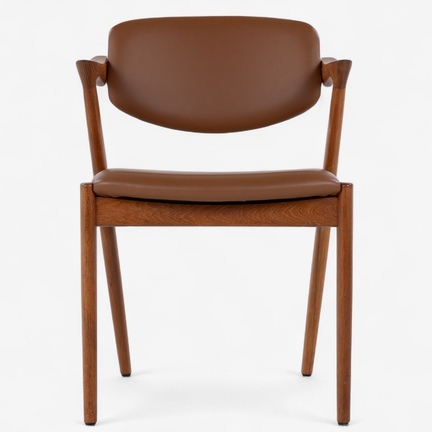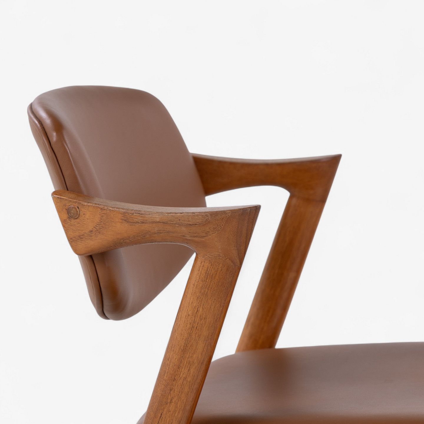 NO 42 - Sæt á 6 'Z-chairs'-armstole i teak m. sæde og ryg betrukket i nyere Savanne-semi-anilin læder (farve: Walnut). Formgivet i 1950'erne.