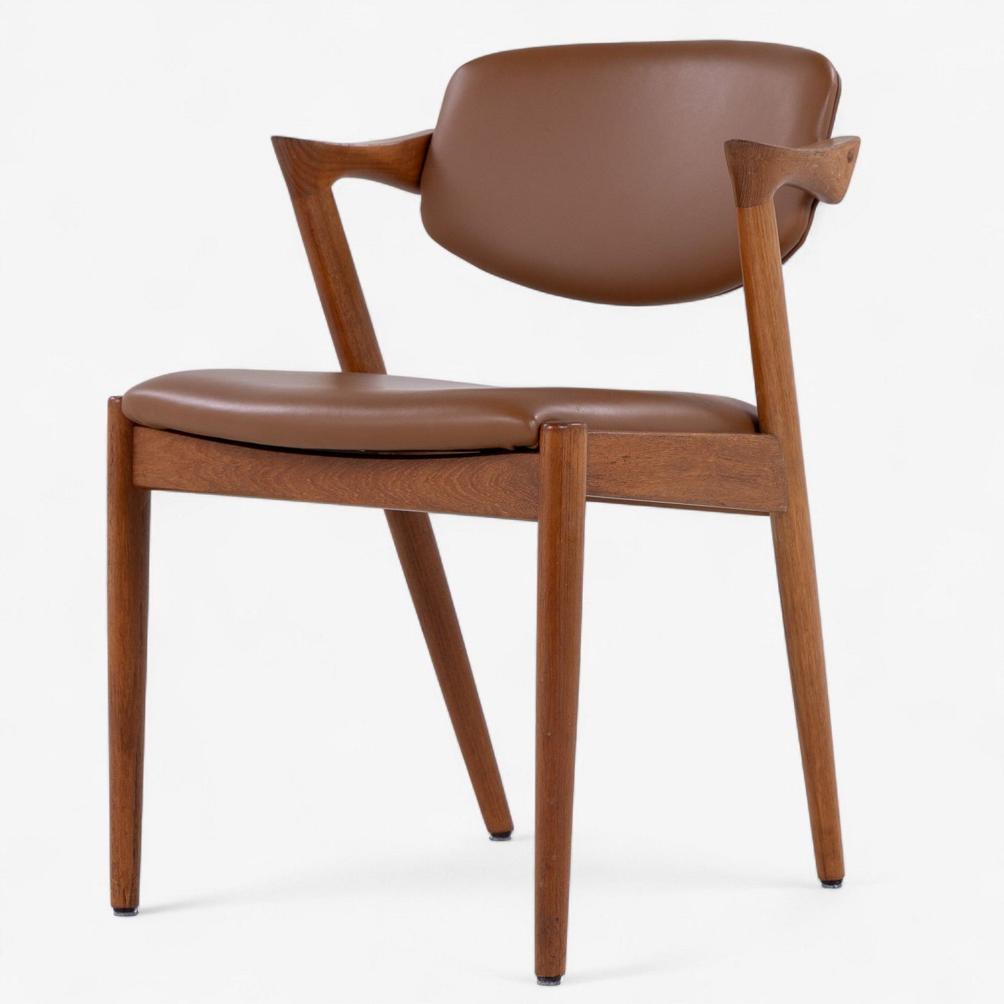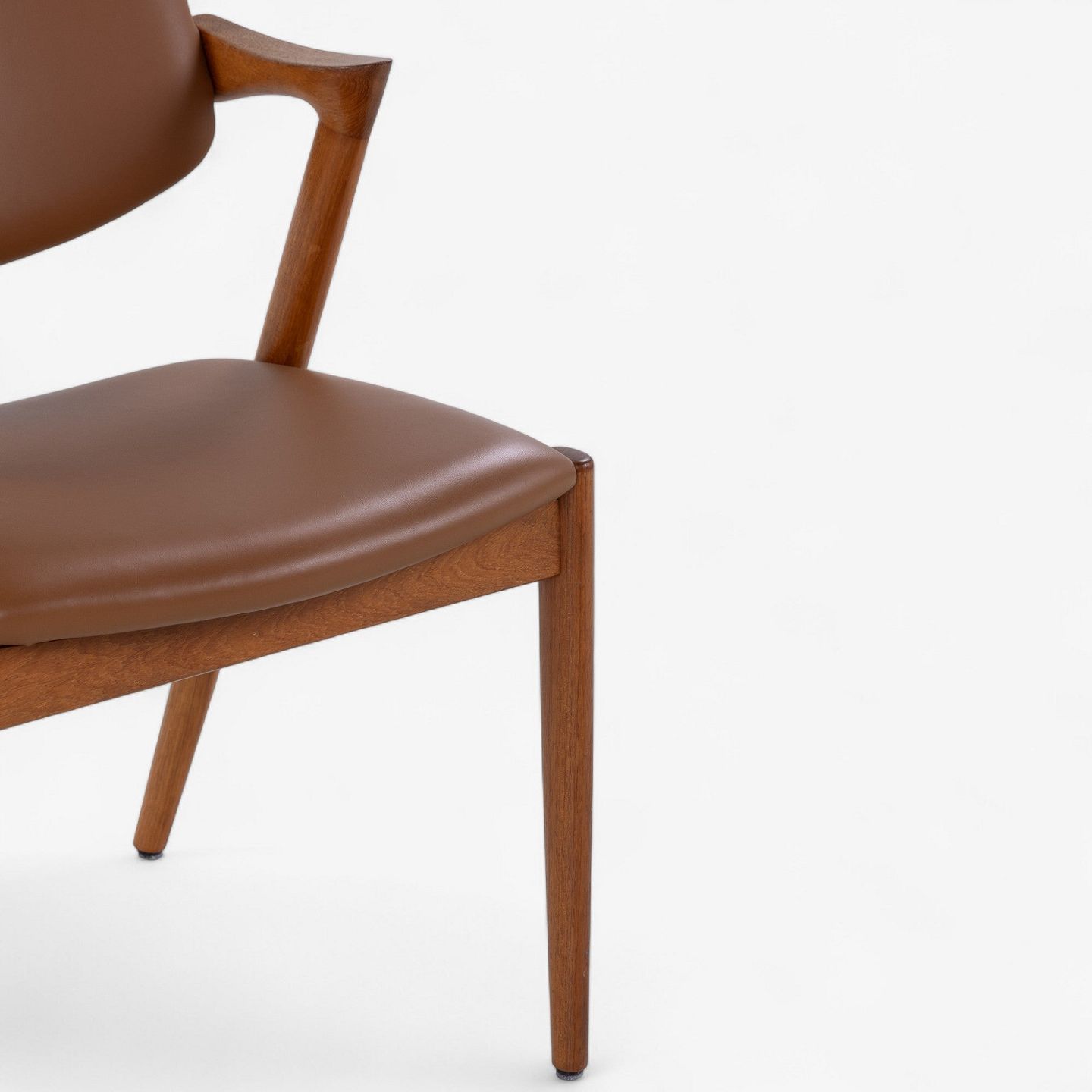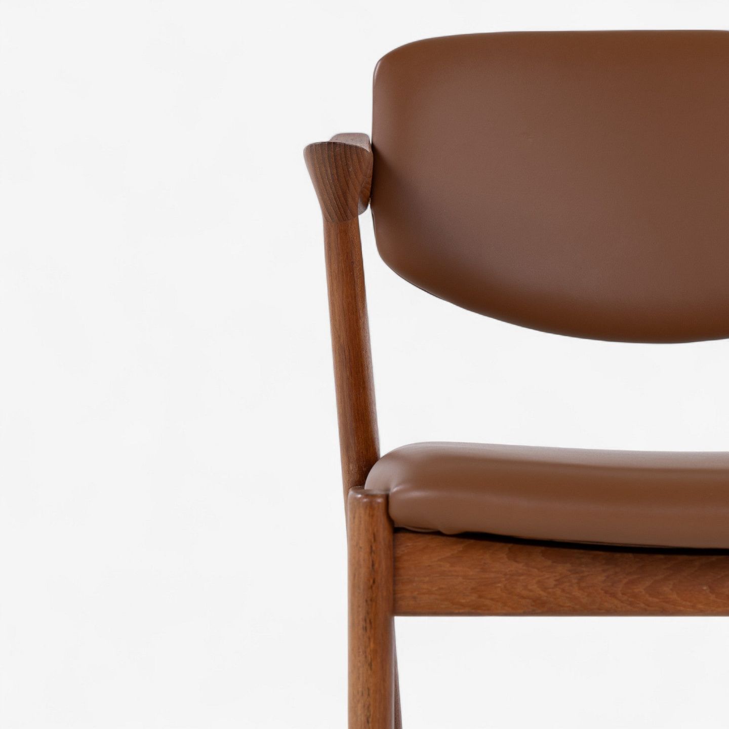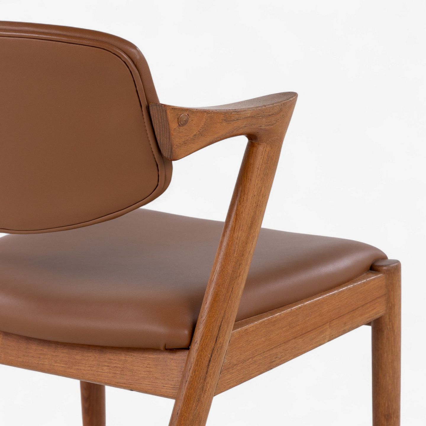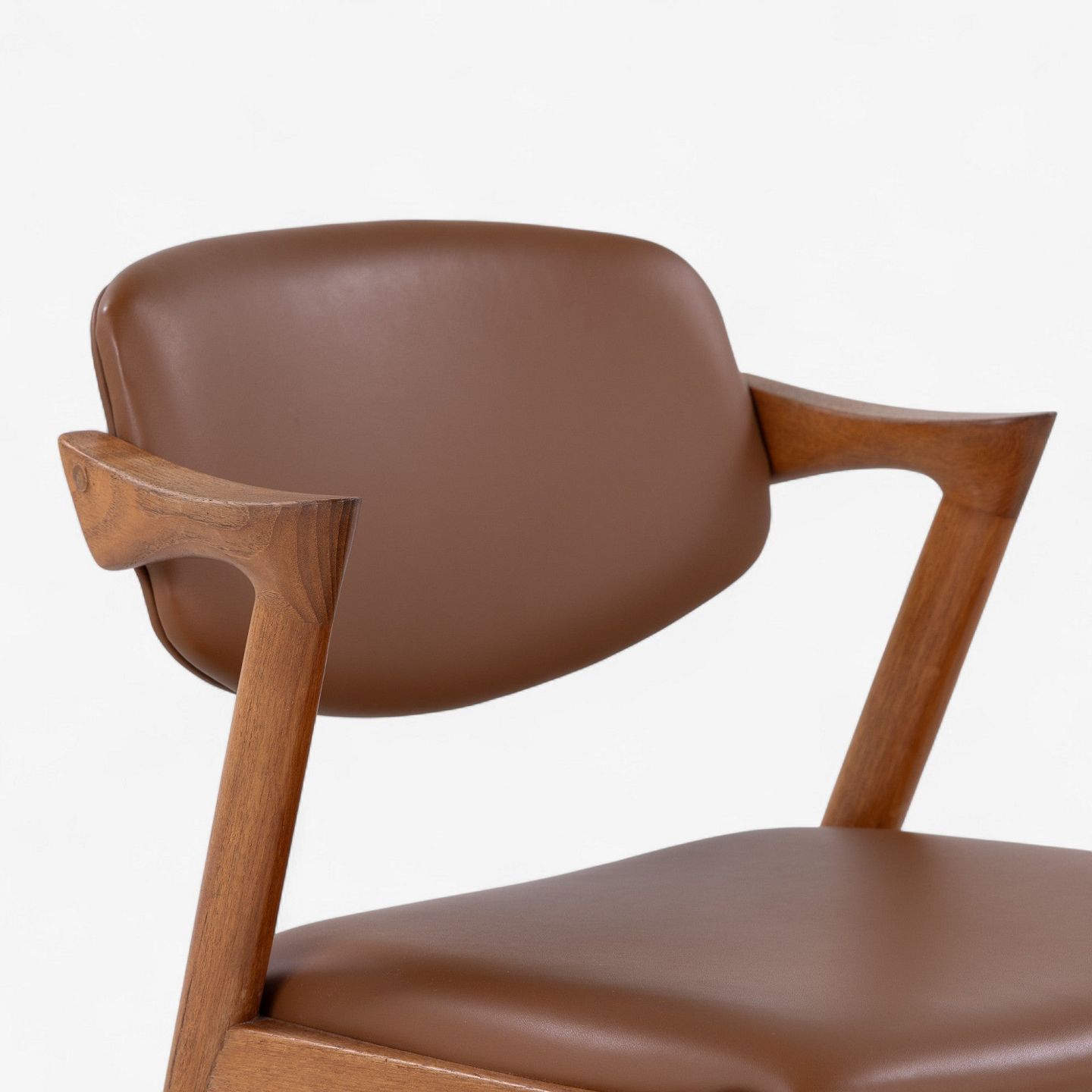 NO 42 - Sæt á 6 'Z-chairs'-armstole i teak m. sæde og ryg betrukket i nyere Savanne-semi-anilin læder (farve: Walnut). Formgivet i 1950'erne.