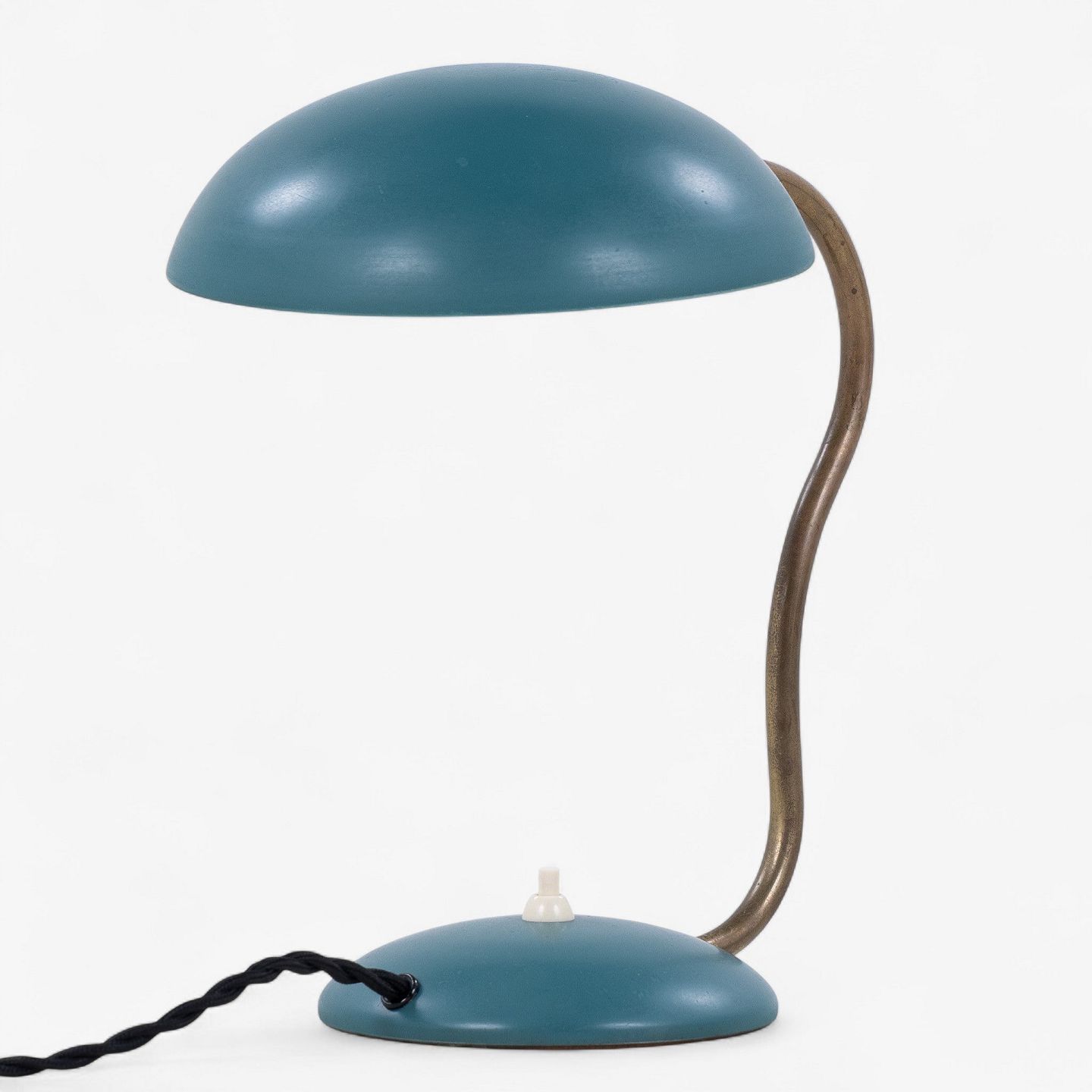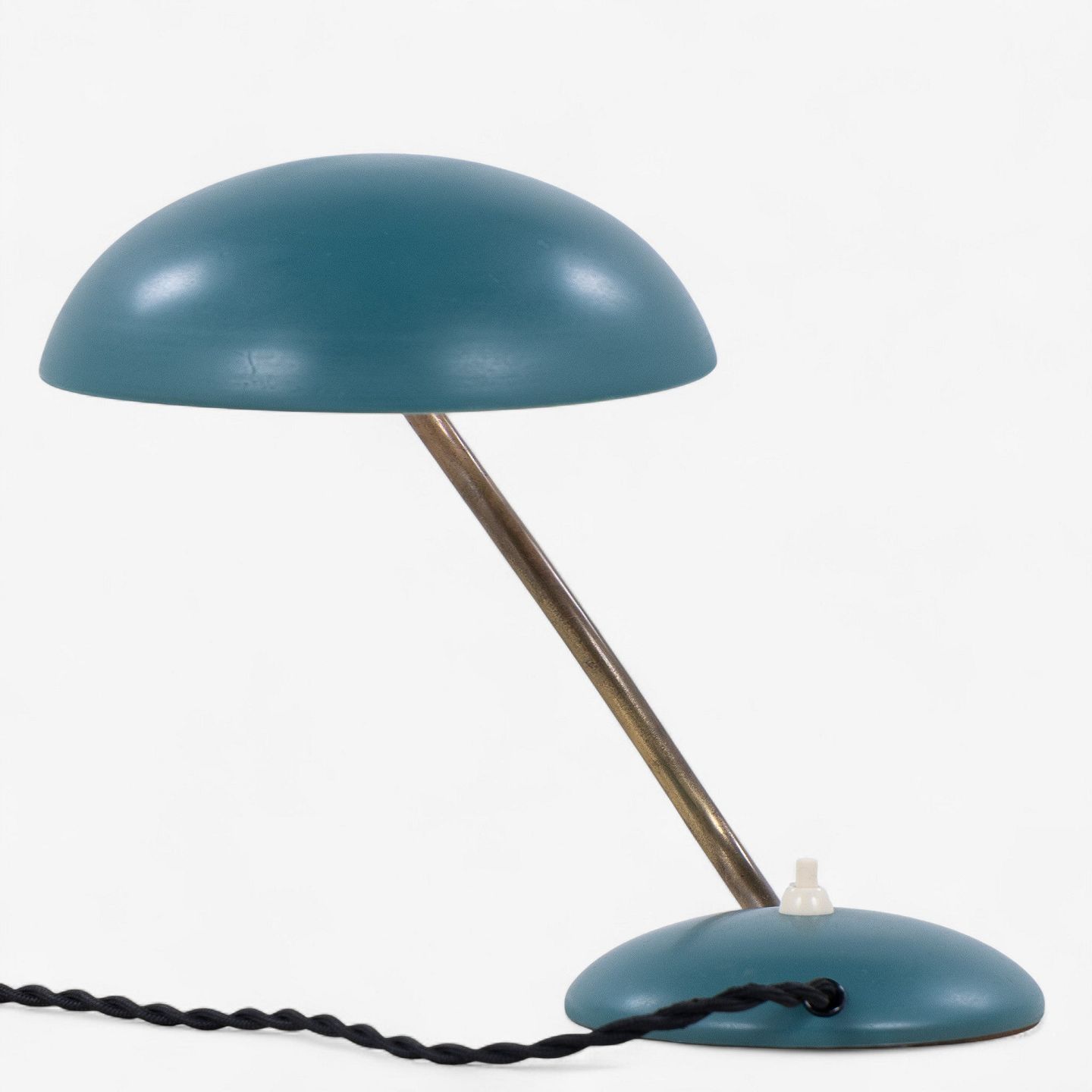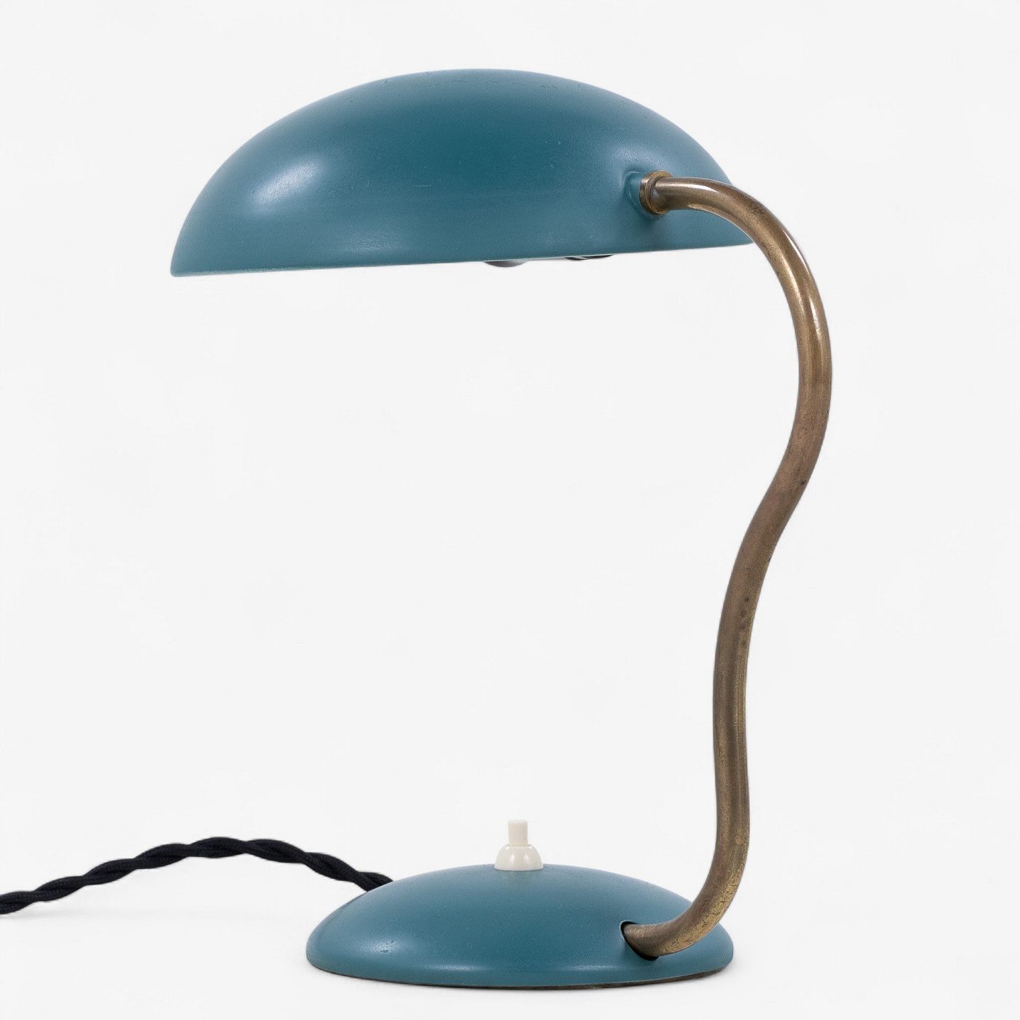 Model E1325 - Bordlampe i grønlakeret metal med justerbar arm i messing.