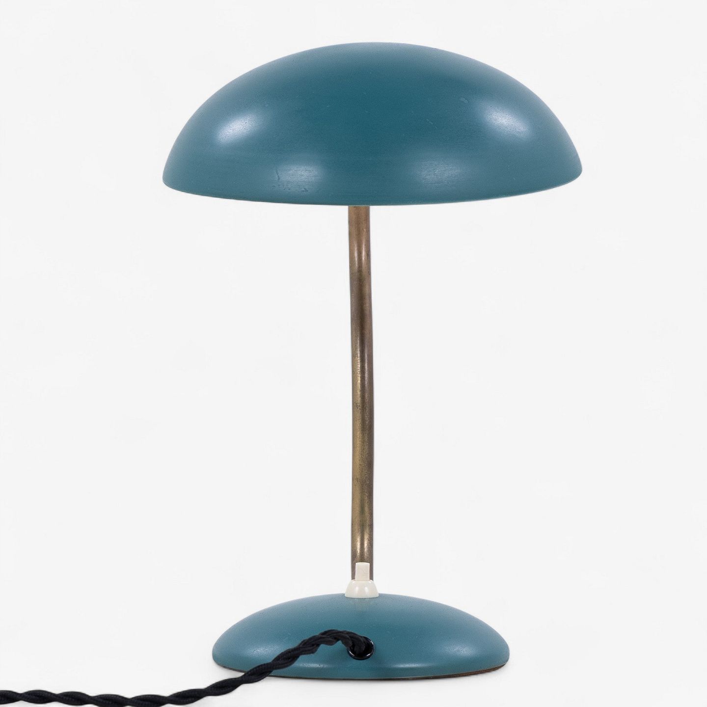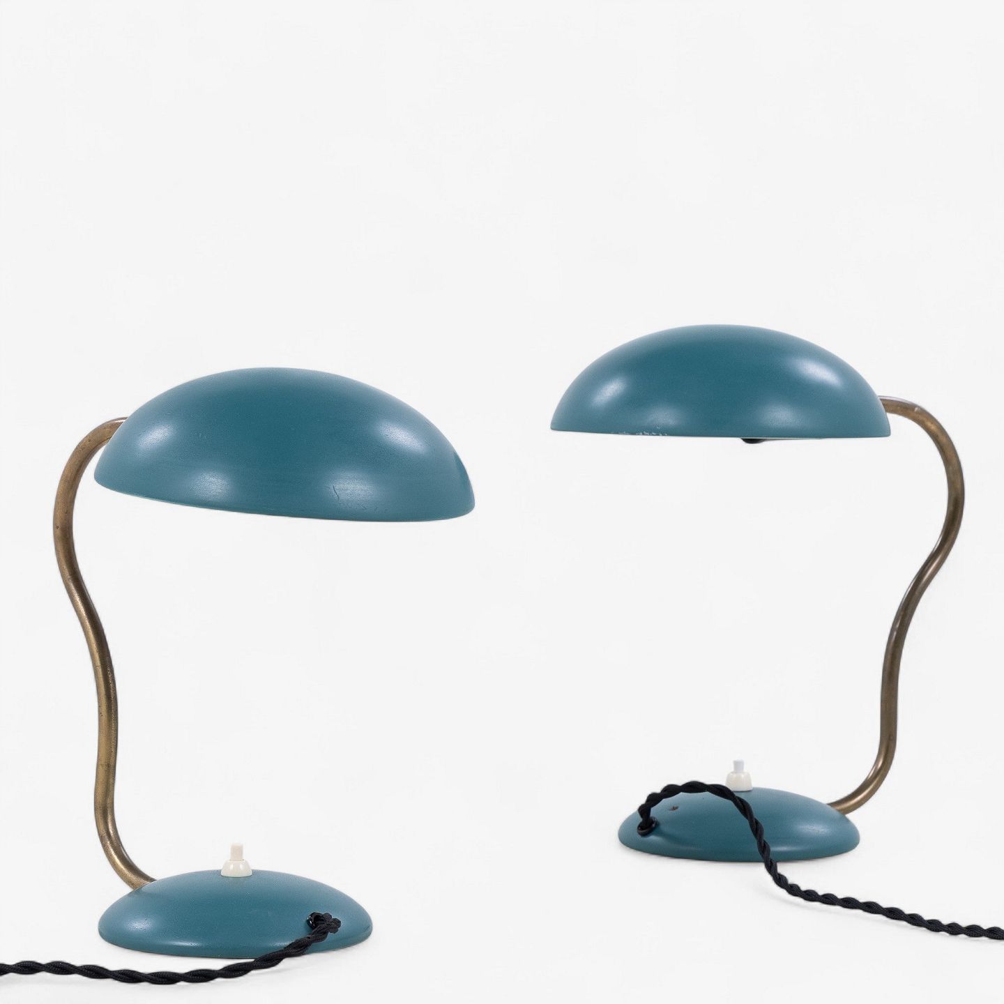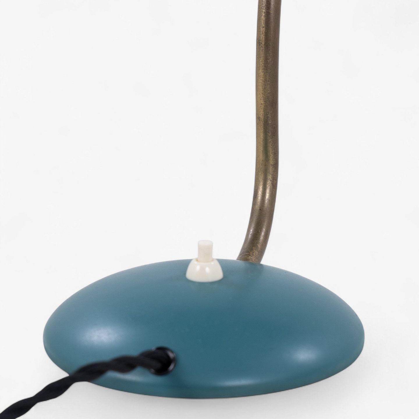 Model E1325 - Bordlampe i grønlakeret metal med justerbar arm i messing.