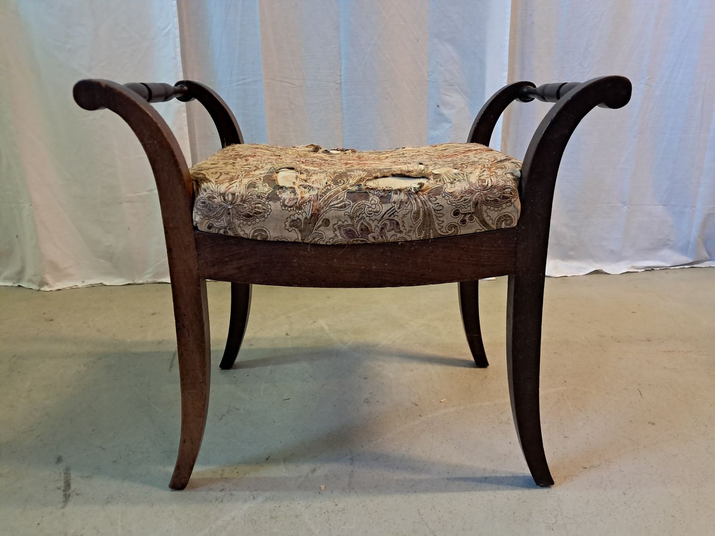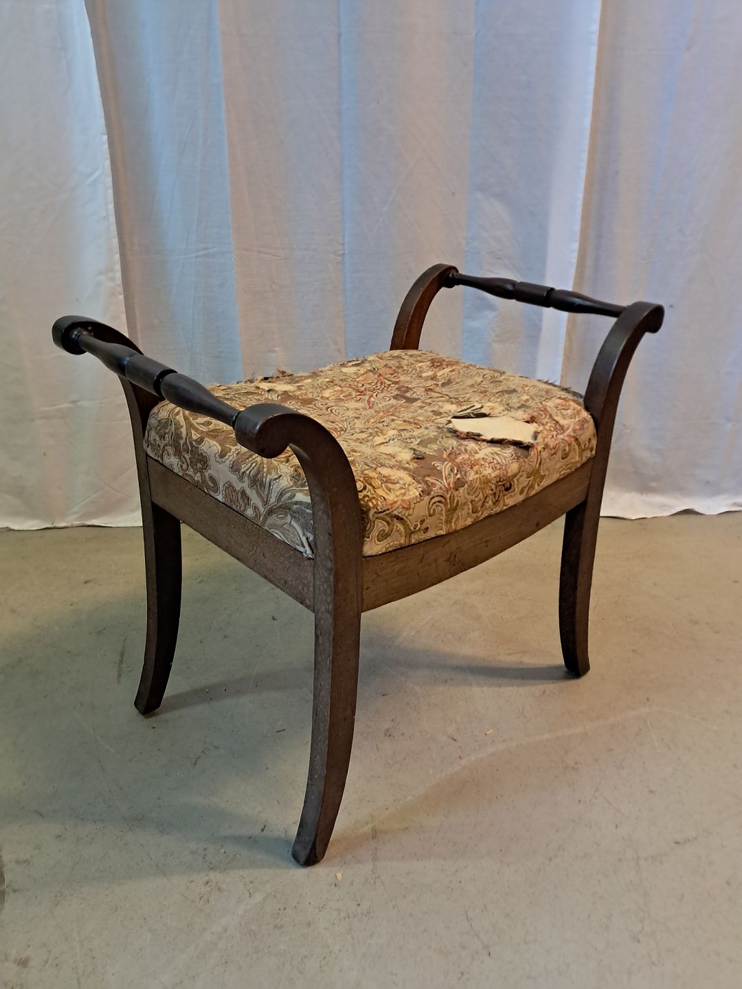 Klaverskammel i massivt mahogni, fra 1910erne.