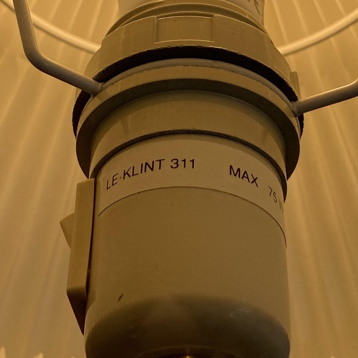 Le klint bordlampe model 311 med lampefod af hvid opalineglas.den viste lampe er solgt , men vi har flere dog uden skærm.