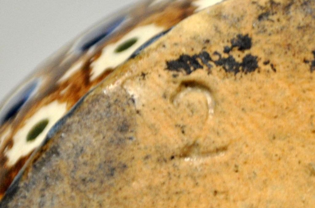 Antik dansk lerkande, 19. årh. Rødler med brune, blå og grønne glasurer. H.: 18 cm.