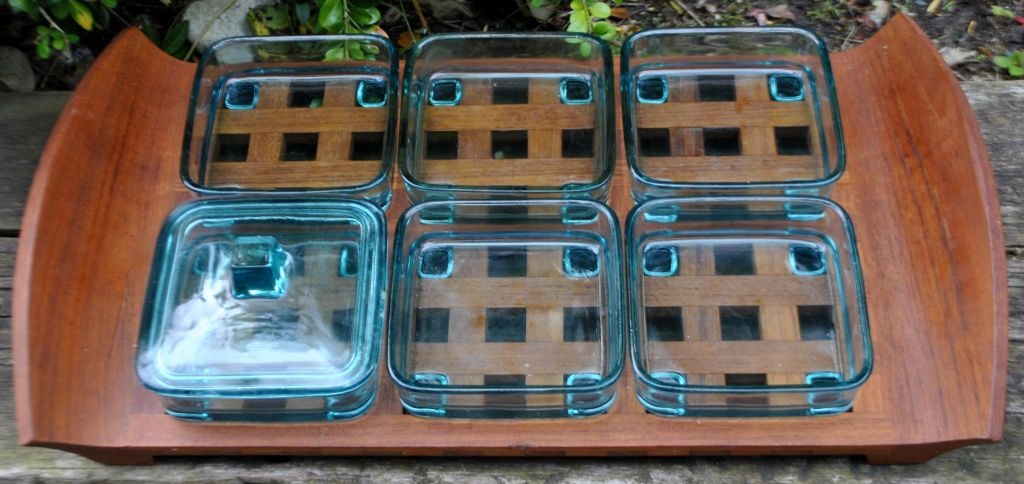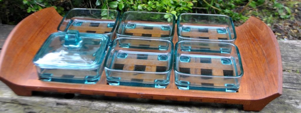 Cabaretfad i teaktræ med seks glas, Jens H. Quistgaard. 20. årh. Danmark.