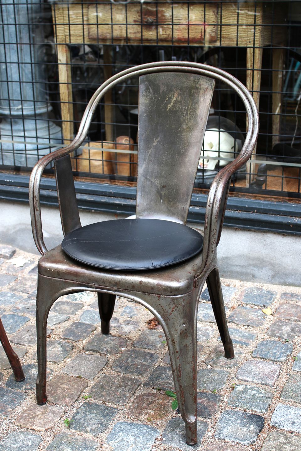 Klassisk fransk Tolix stol med armlæn i afsyret, poleret og lakeret metal...