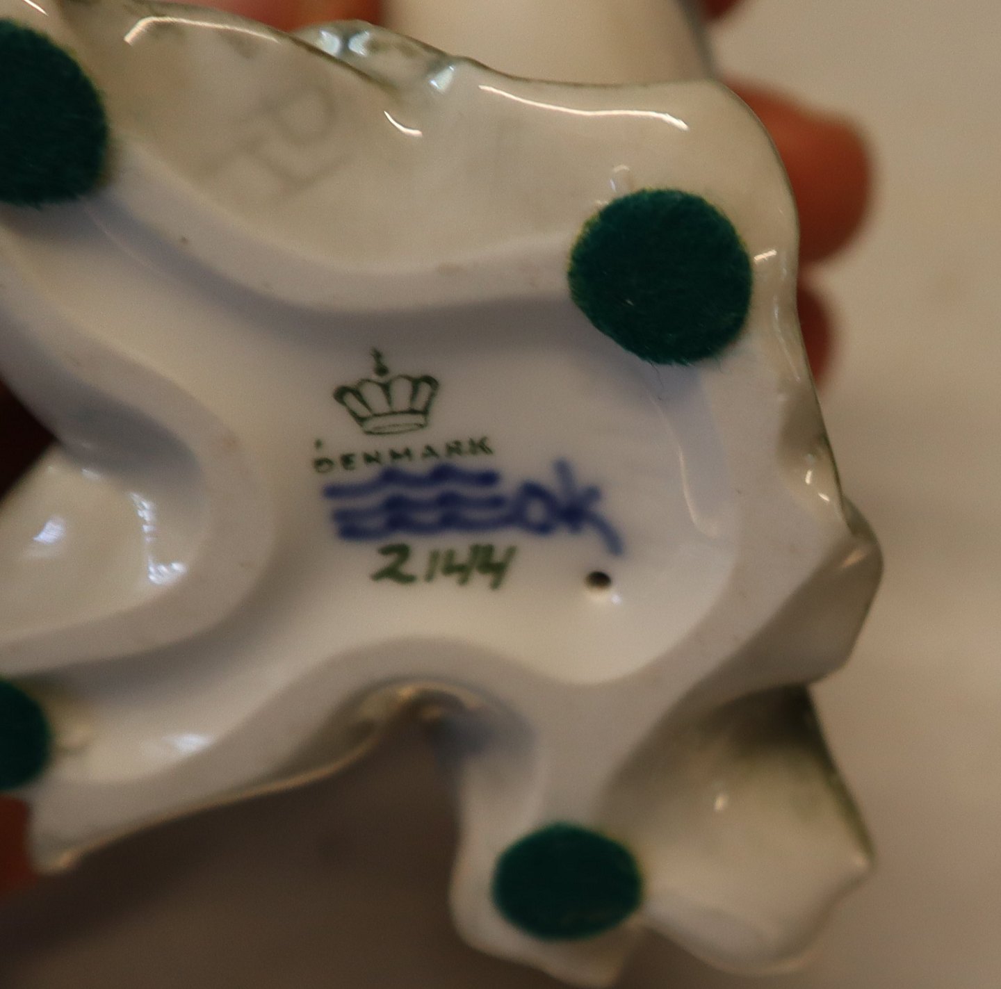 2144 Kgl. Fluesnapper 8 x 13 cm Platten Hallermundt 1920 Fuglefigur i Porcelæn fra Royal Copenhagen I hel og fin stand