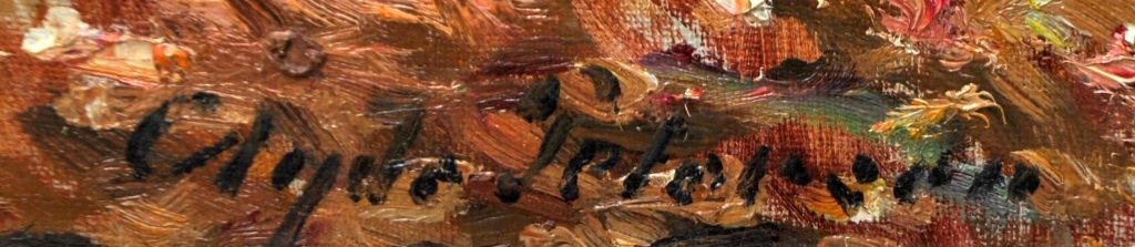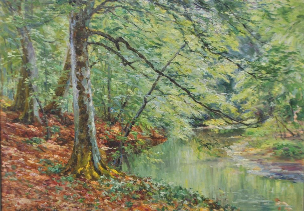 Gyde Petersen, Hans (1862 - 1943) Danmark: Et åløb, forår. Olie på lærred. Signeret. 54 x 75 cm.