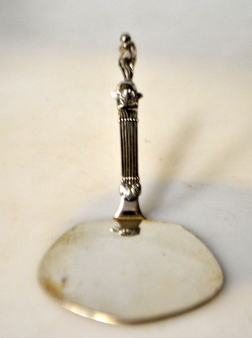 Reppien sølv spatel, 1952, Skanderborg, Danmark. Skaft med stående nøgen kvinde. Stemplet. L.: 15 cm. Vægt.: 30 gram.
