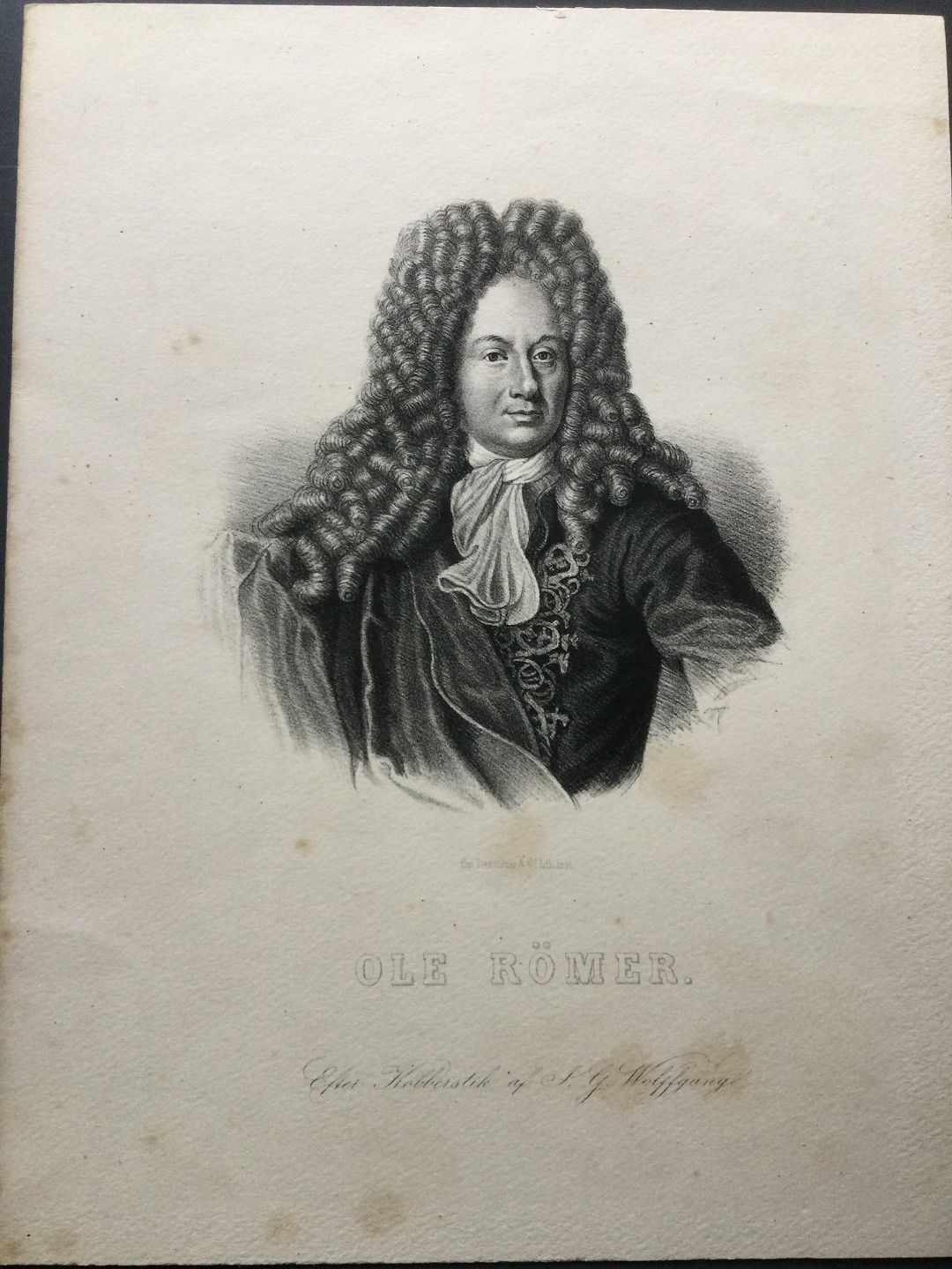 Litografi af Em. Bærentzen - Portræt af Astronomen Ole Rømer 1868.