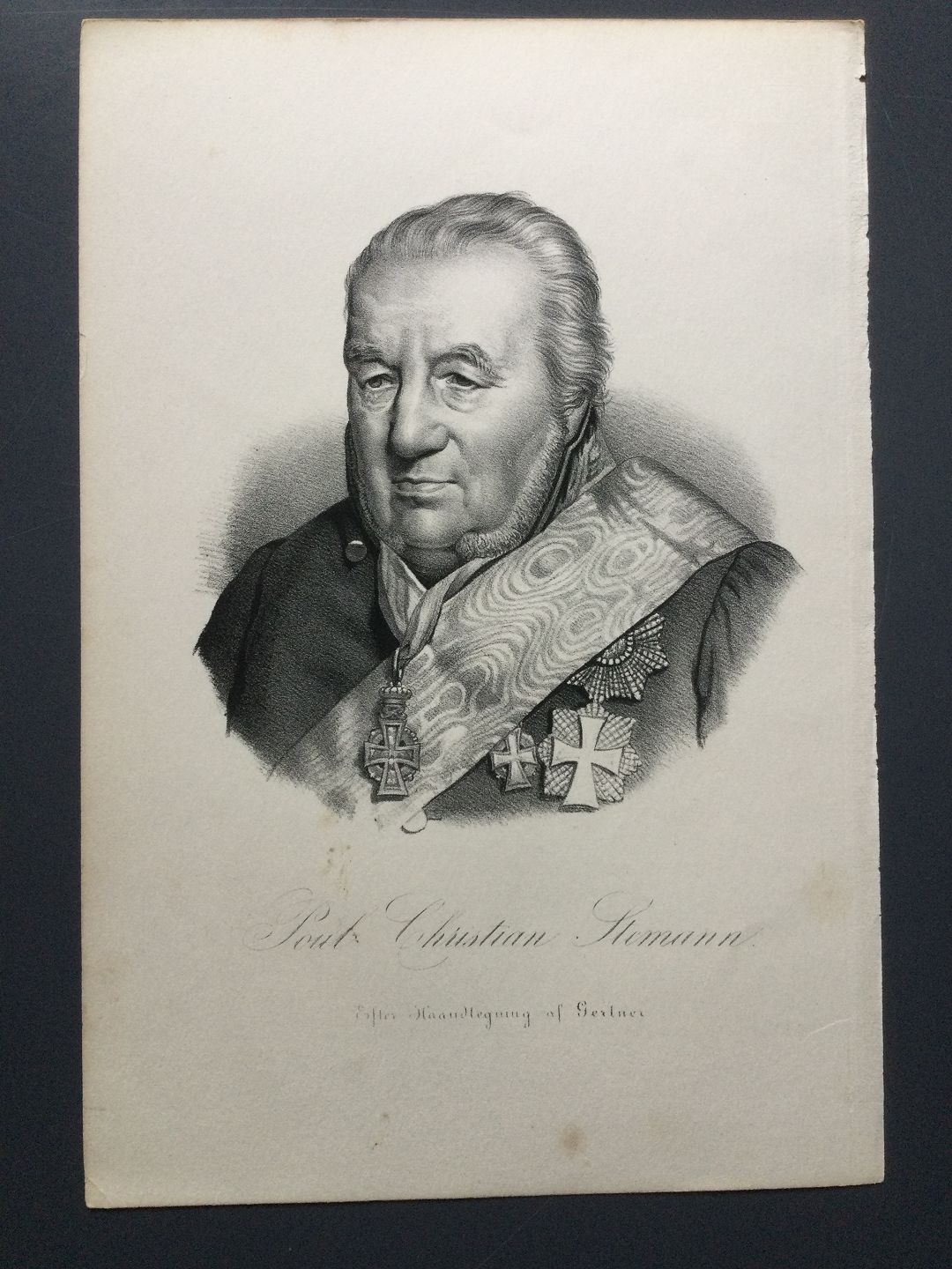 Portræt af Minister Poul Christian von Stemann - litografi af Em. Bærentzen 1869.