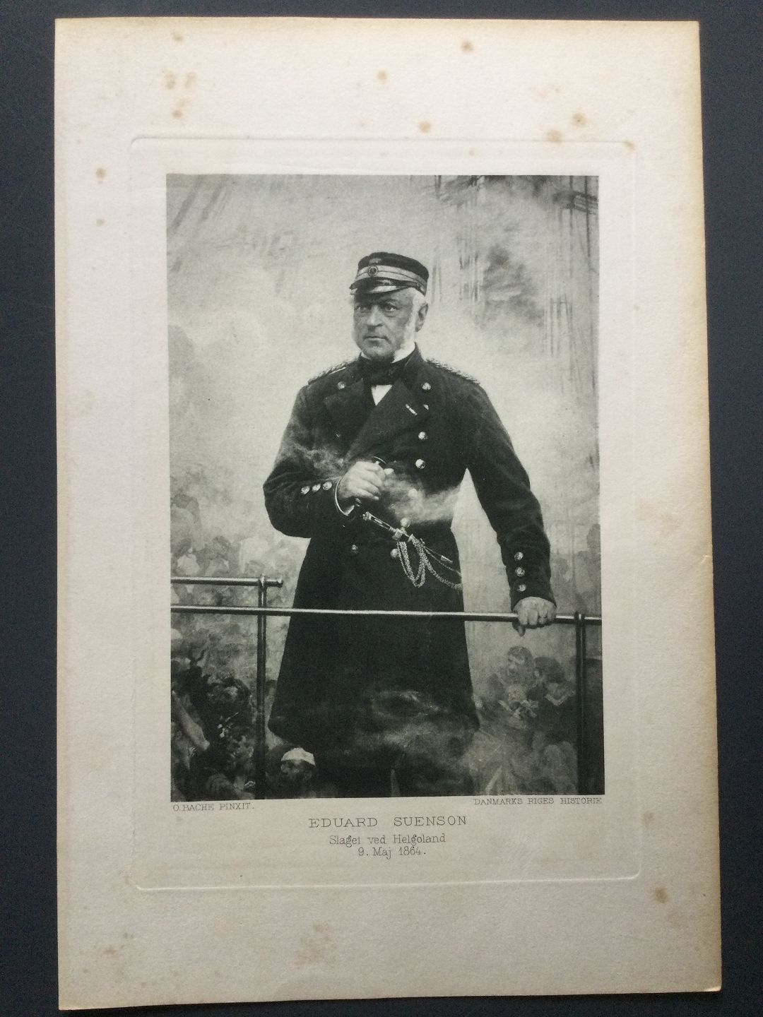 Litografi - Portræt af Søofficer Eduard Svenson - Slaget ved Helgoland 1864.