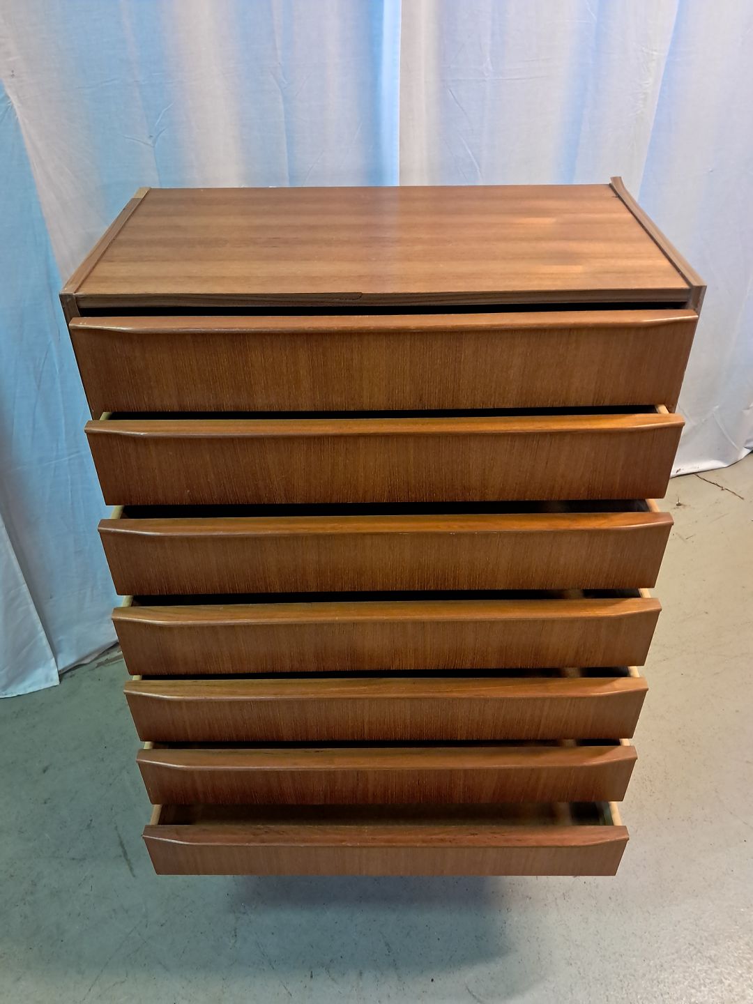 Kommode i fineret teaktræ, fra 1960erne.