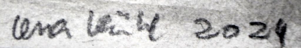 Kühl, Lena (1950 -) Danmark: Komposition, 2024. Collage med avisudklip og tusch. Signeret: Lena Kühl 2024. H: 56 cm. B: 76 cm.