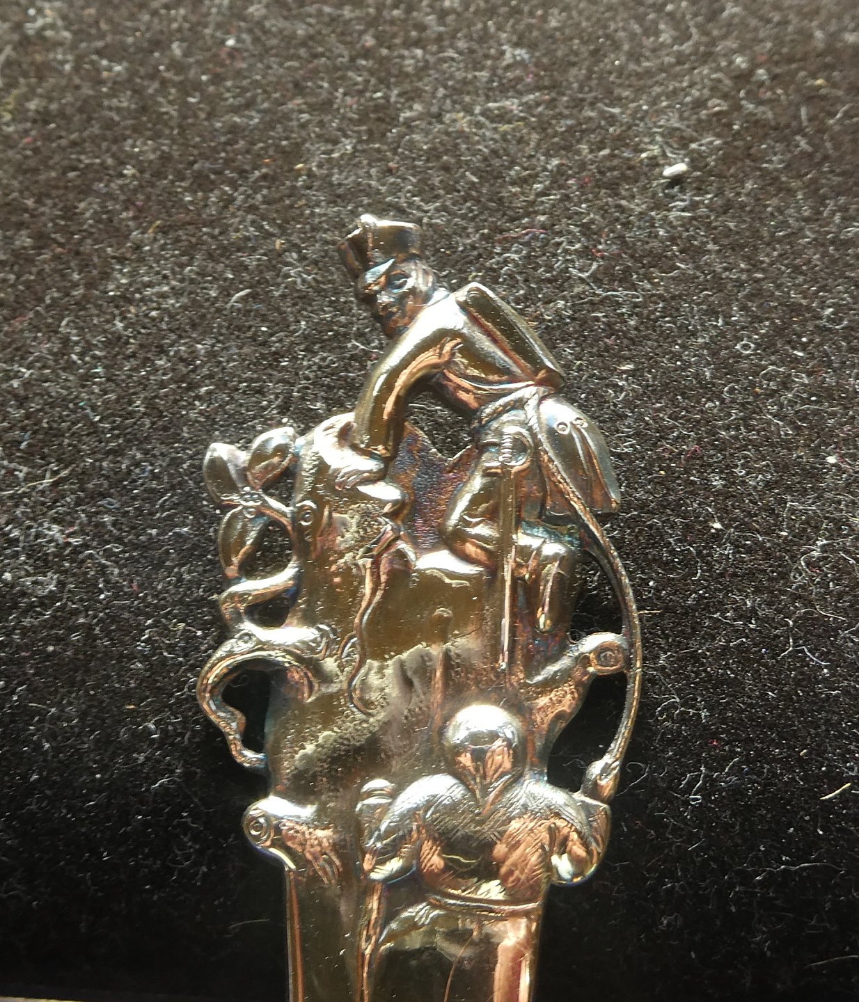 Märchen dänisch Kinderbesteck Taufbesteck in drei Türme vergoldetem Silber mit dem Feuerzeug.
