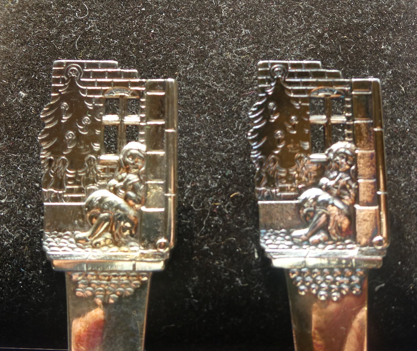 H.C. Andersen barnebestik i tretårnet forgyldt sølv med Den lille Pige med Svovlstikkerne.