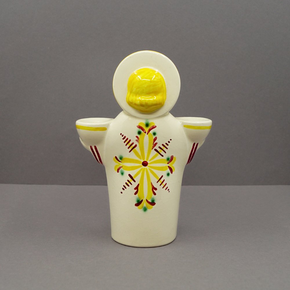 Aluminia; Juleengel i fajance. Med plads til to lys. H. 13,5 cm.