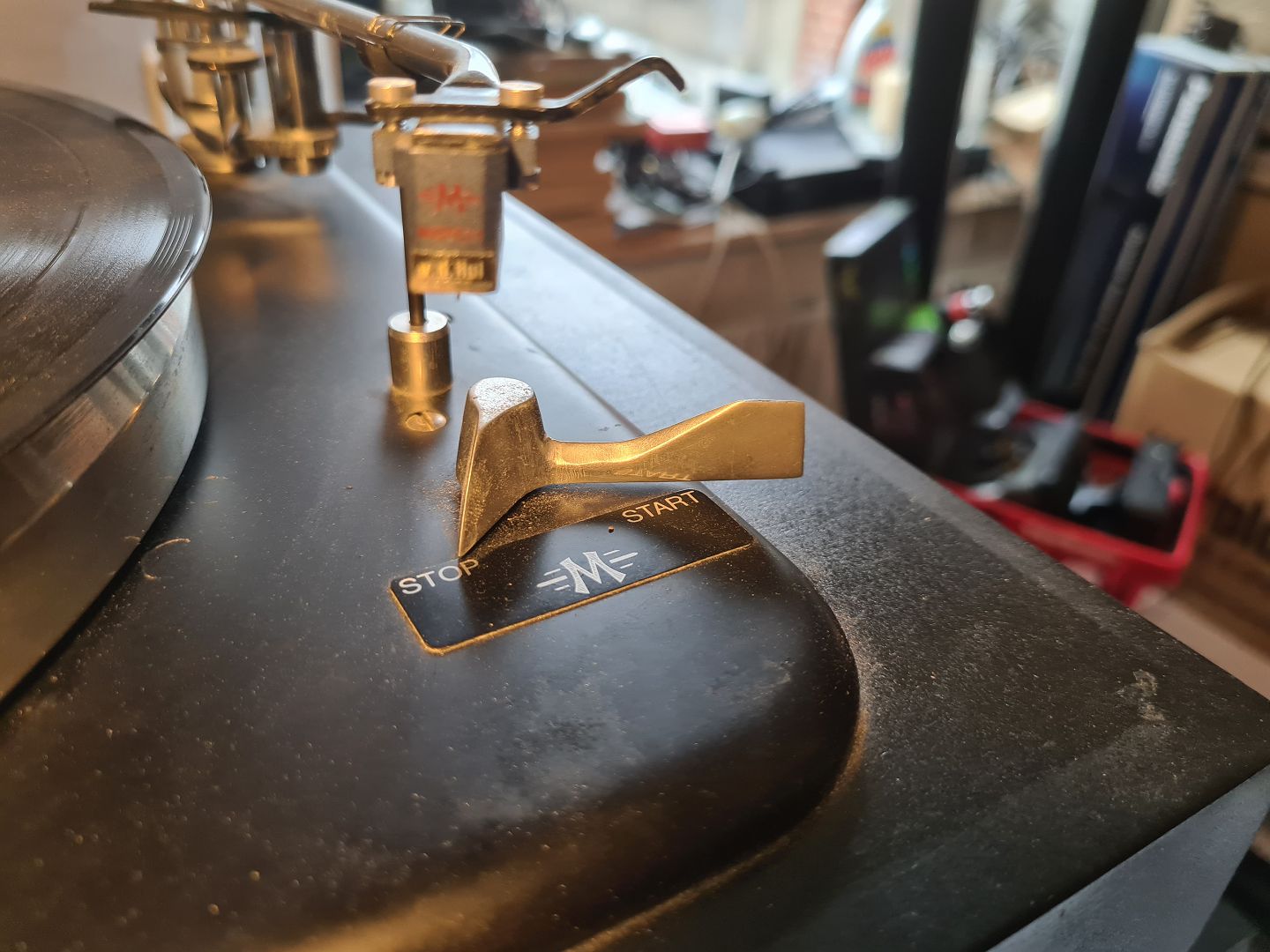 Vintage pladespiller H. H. Mørch model GS 6 i sort trækabinet. Testet og kører måske en anelse ujævnt hastighedsmæssigt, men starter ellers fint op. Hastighedsknop virker ligeledes fint. Kommer med Mørch tonearm model UP4 monteret med DACAPO pickup ligeledes fra Mørch. Derudover originalt cover.