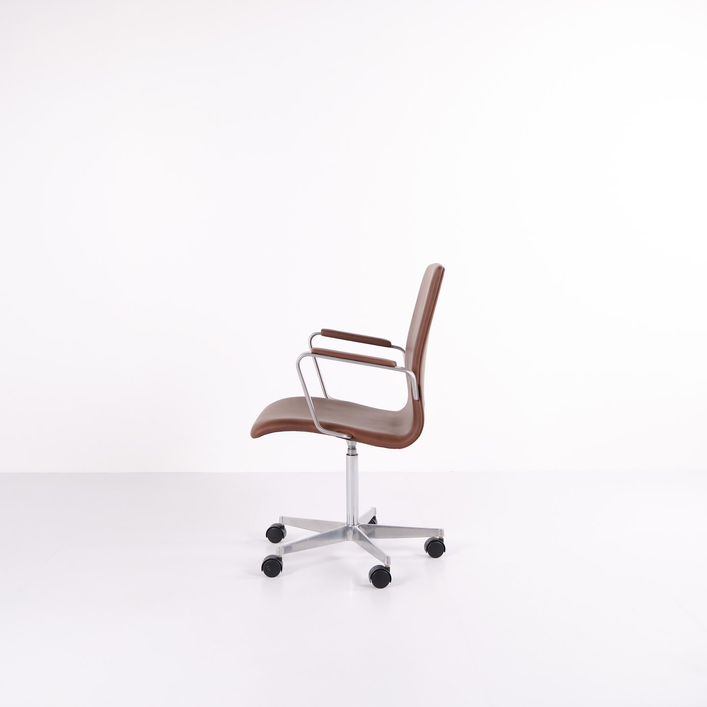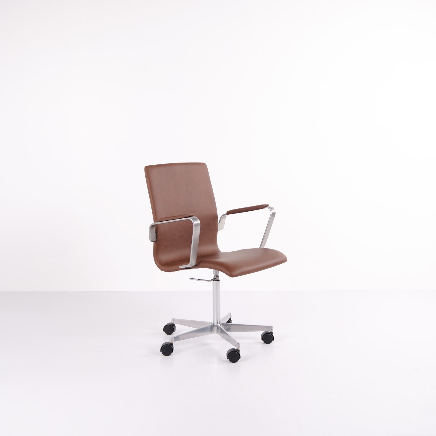 Arne Jacobsen Oxford Classic kontorstol, model 3291, for Fritz Hansen. Nypolstret i brunt læder.