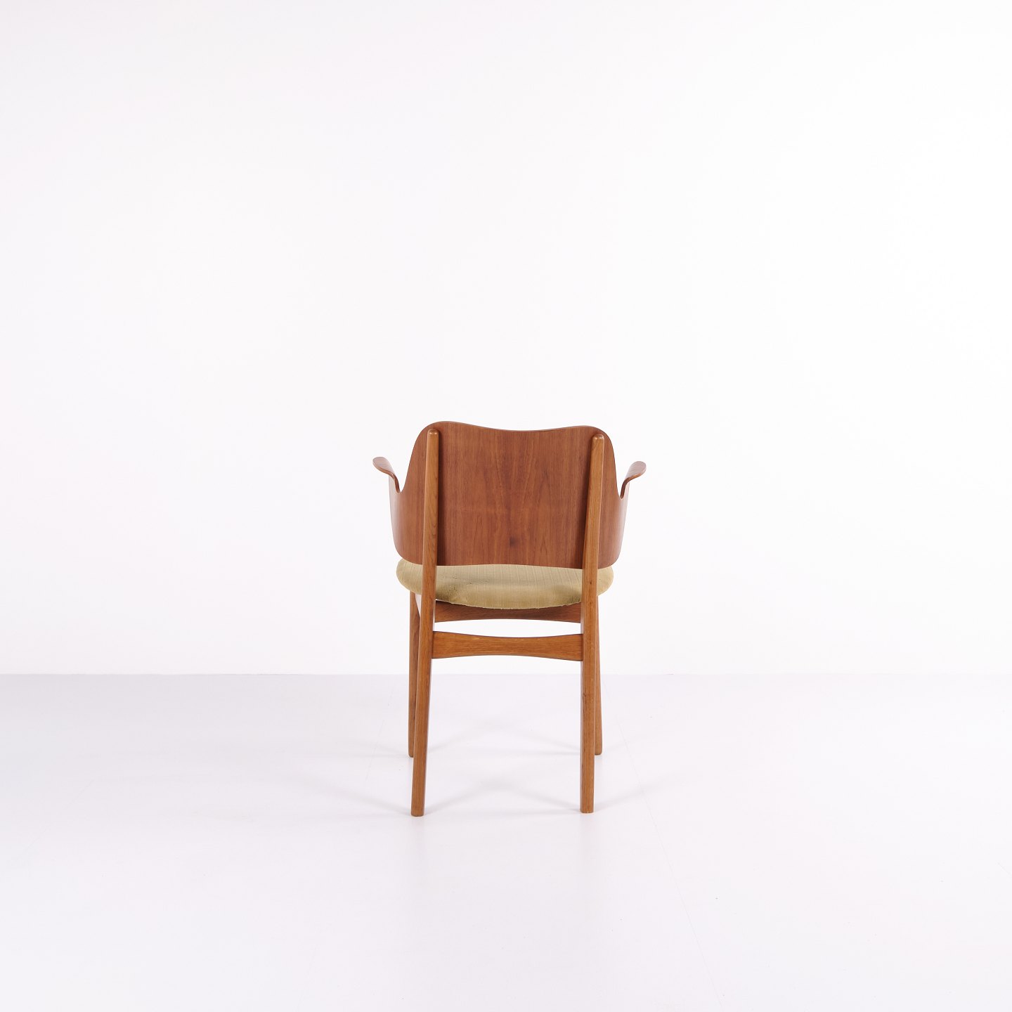 Hans Olsen armstol, model 107, fra 1960’erne. Eg og teaktræ med original polstring. Klassisk dansk design.