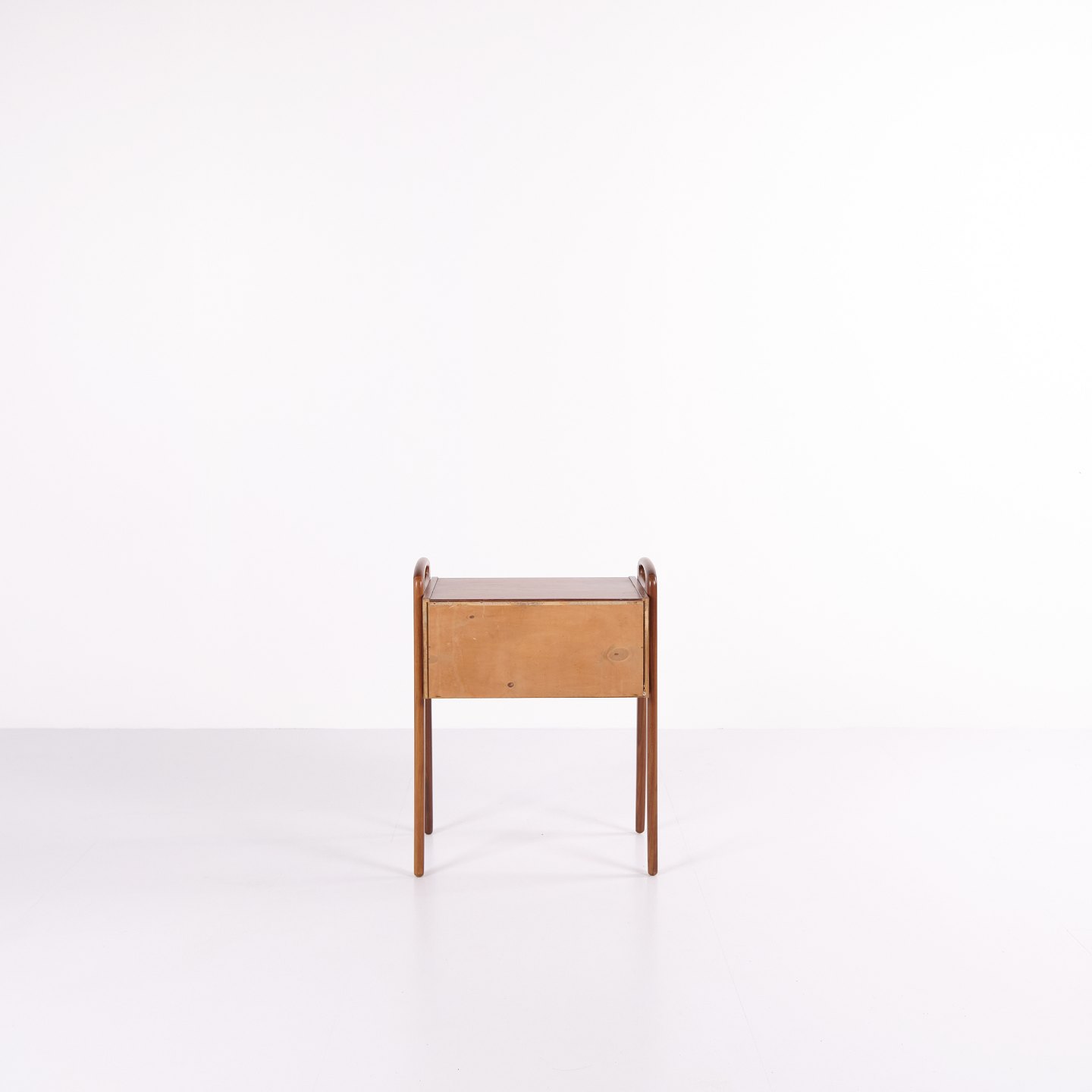 Klassisk side- eller natbord fra 1960’erne, udført i teaktræ med et enkelt og funktionelt formsprog.