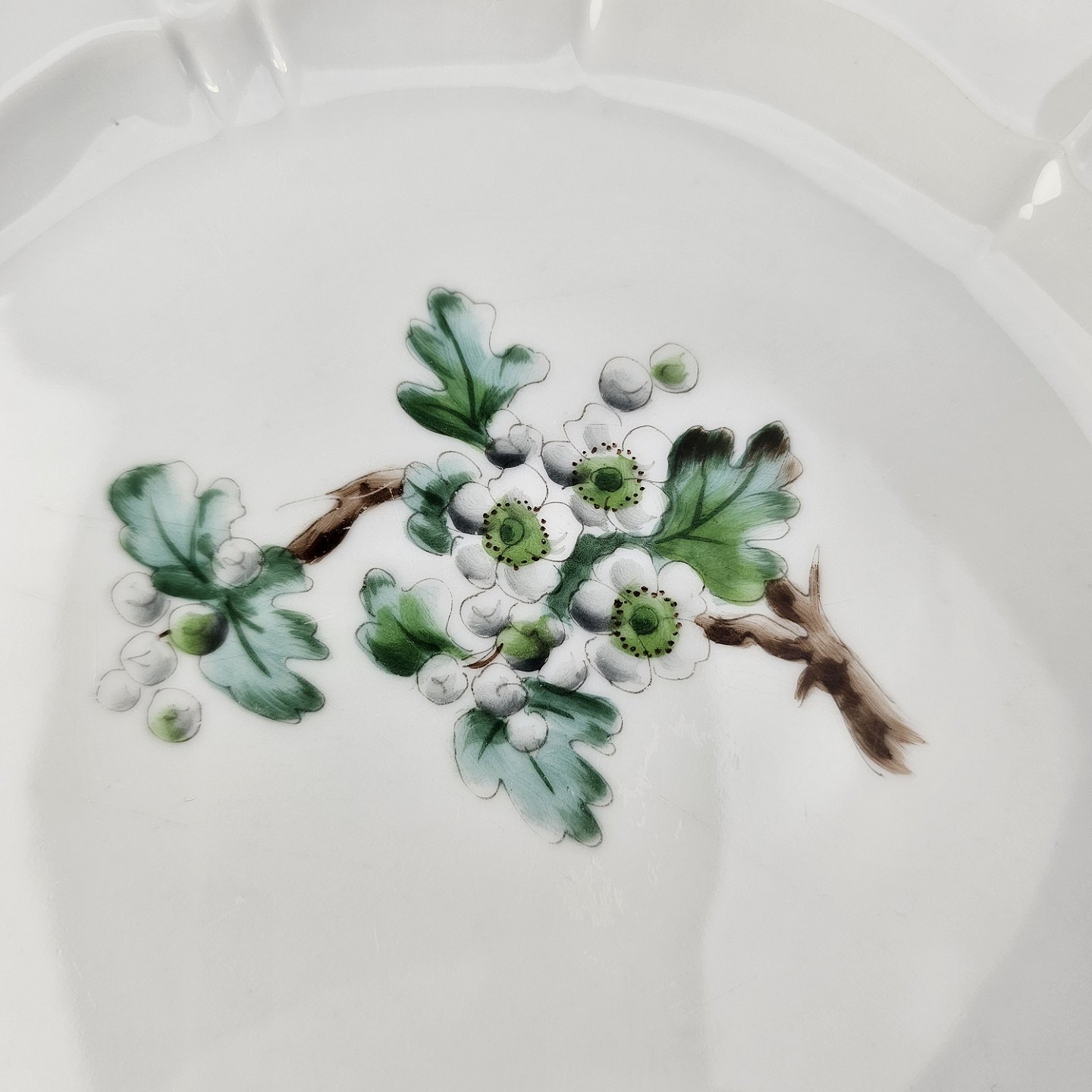 Eremitage er porcelæn dekoreret med hvidtjørn og guldkant