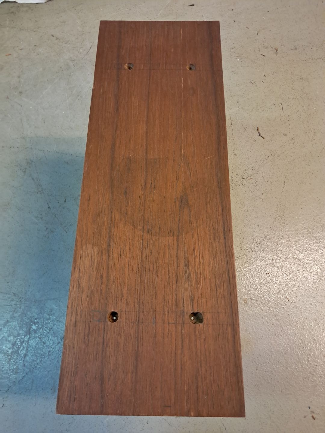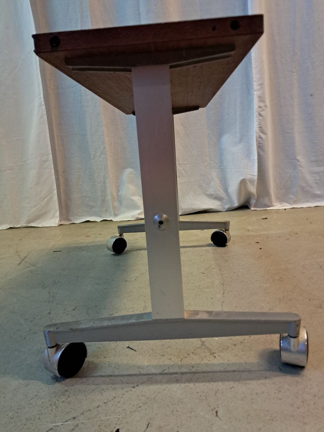 Bord i aluminium med fineret plade i teaktræ, fra 1980erne.