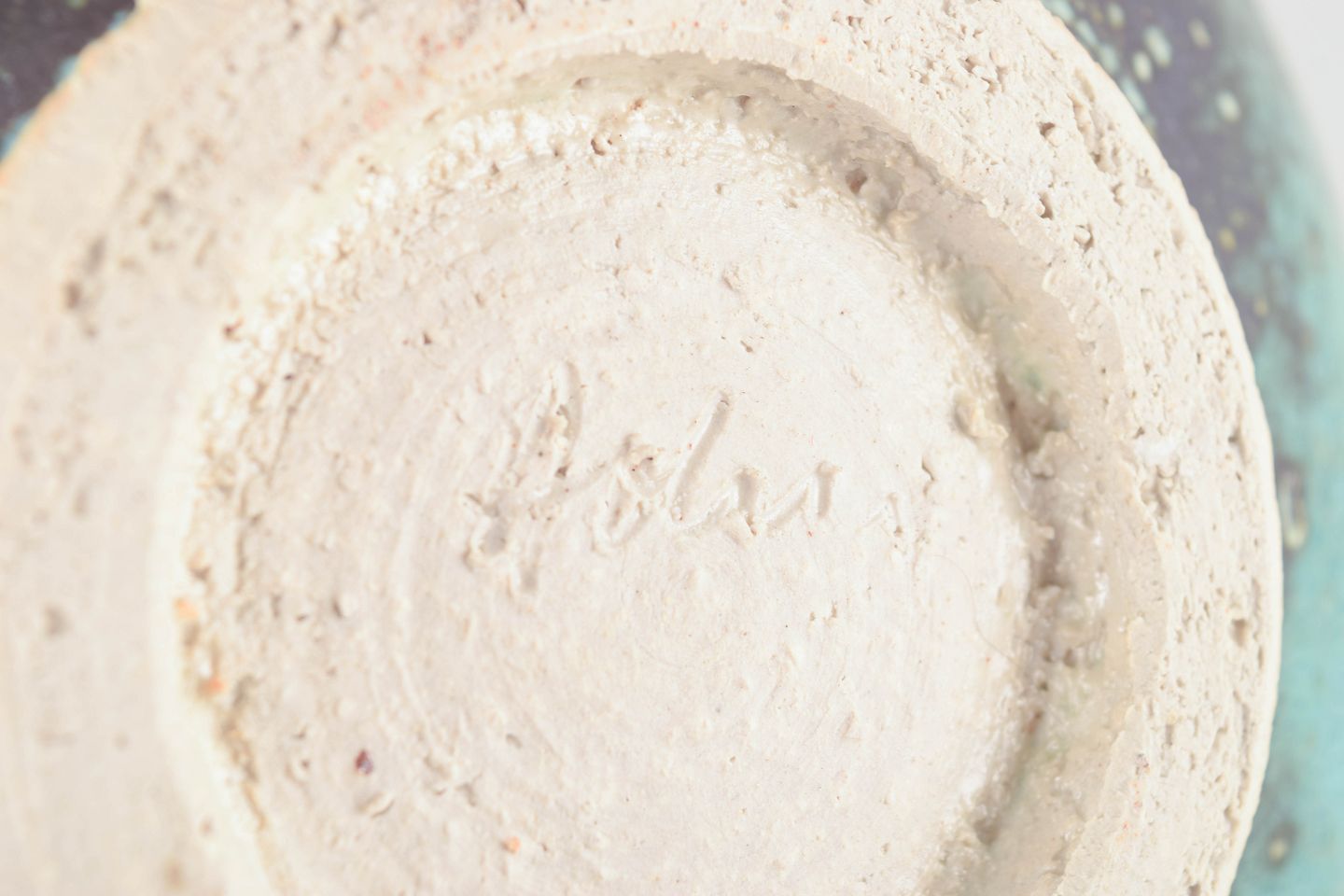 Skandinavisk studiokeramik fra 1970’erne udviser ofte en kombination af rustikke former og eksperimenterende glasurer, inspireret af naturens farver og materialer. Den individuelle signatur vidner om keramikerens håndværksmæssige tilgang og unikke udtryk.