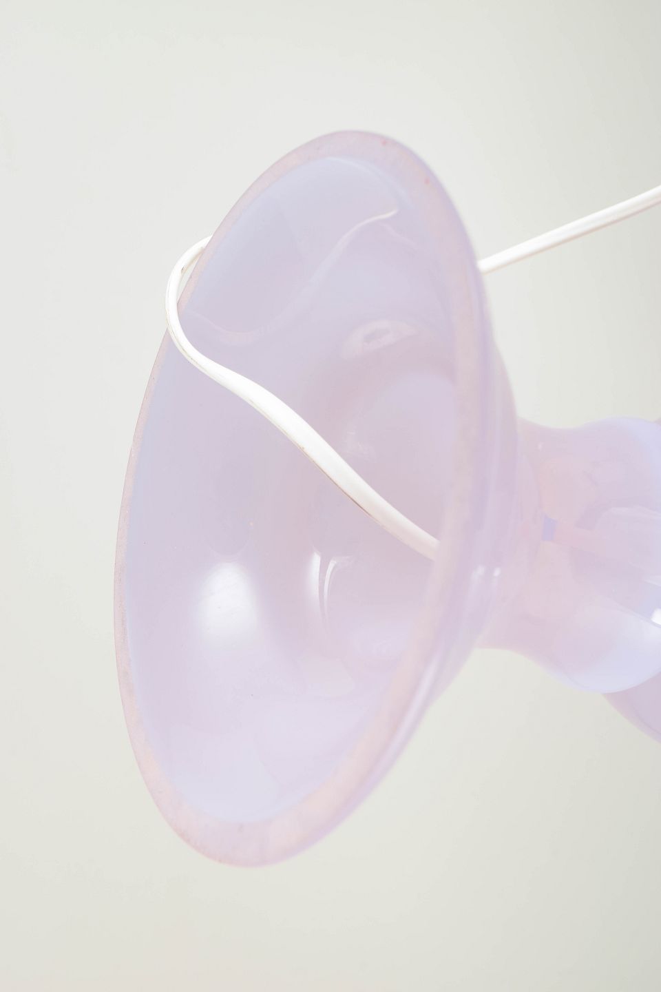 Glaslamper fra 1980’erne var ofte inspireret af tidligere tiders opalglas og urneformer, men i moderne farveskalaer som lilla, turkis og rosa. Disse lamper kombinerede funktion med dekorativ effekt og blev populære i både nordisk og italiensk interiørdesign.