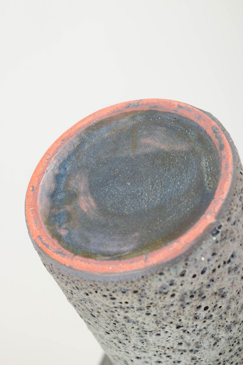 I 1970’ernes tyske studiokeramik eksperimenterede pottemagere med kraftige teksturer, porøse overflader og levende glasurer. Den såkaldte lava-glasur blev populær for sin taktile kvalitet og dramatisk kontrast til dybe, blanke farver som koboltblå og turkis. Disse værker udtrykker en tidstypisk fascination af materialets rå æstetik og håndens aftryk i processen.