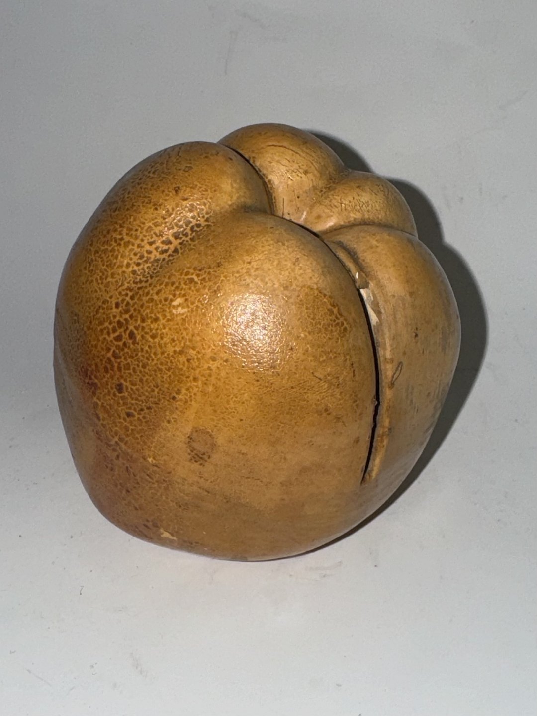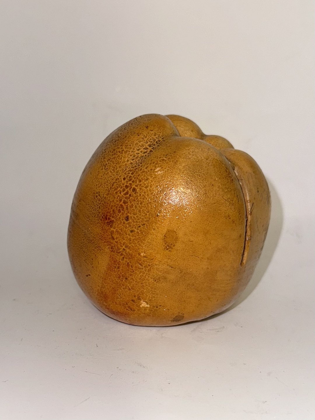 Sparebøsse i keramik i form af æble. Fremstillet i begyndelsen af 20. århundrede. I god stand. H. 9 cm