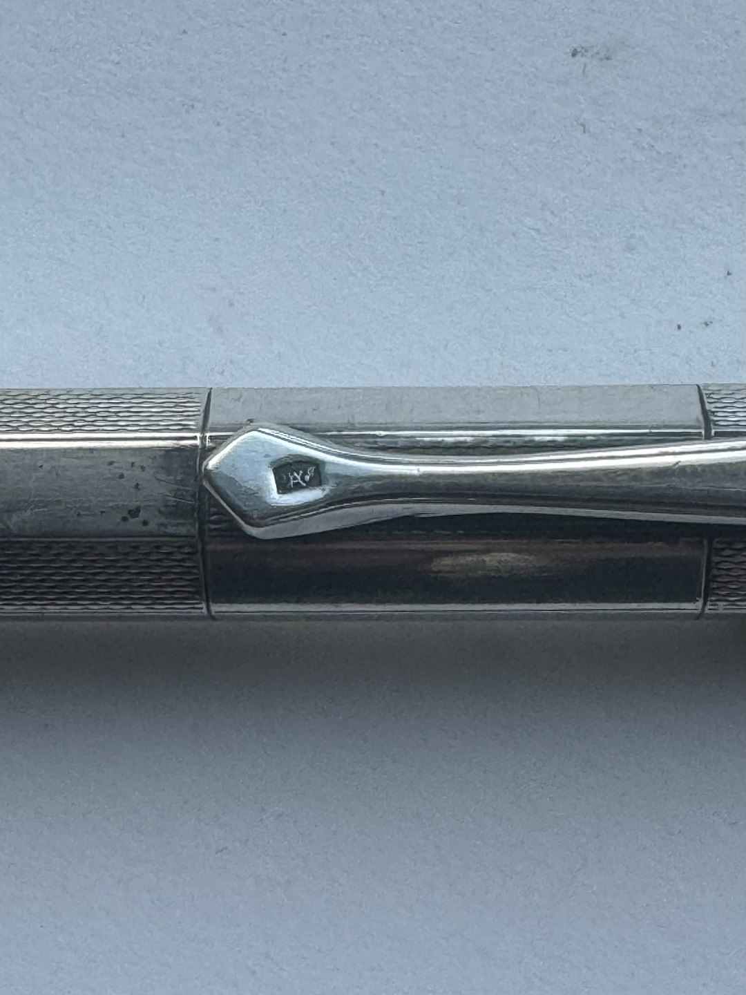 REN ART DECO STIL: Otte-kantet Montblanc Pix skrueblyant i sølv. Fremstår i god og funktionsduelig stand. Ingen skader. Fabiksmærket på siden. Sølvstemplet på clip’en (900). Længde: 11,8 cm
