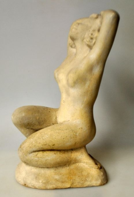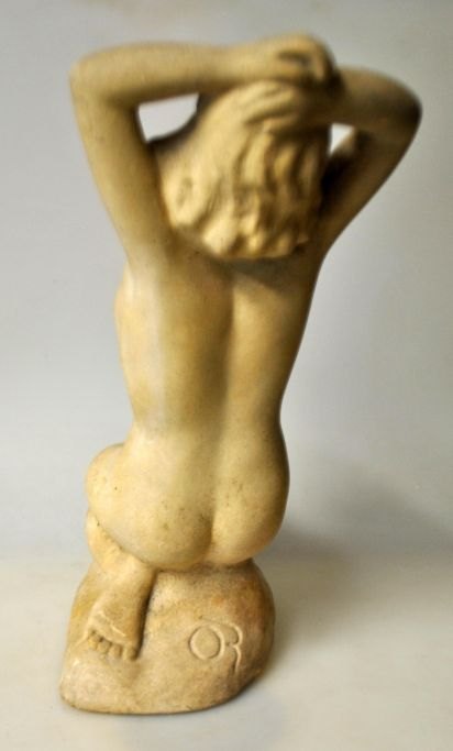 Rasmussen, Ove Fritz (1911 - 1973) Danmark: Kvindefigur. Sandstens figur. Støbt. Signeret. 29 cm.