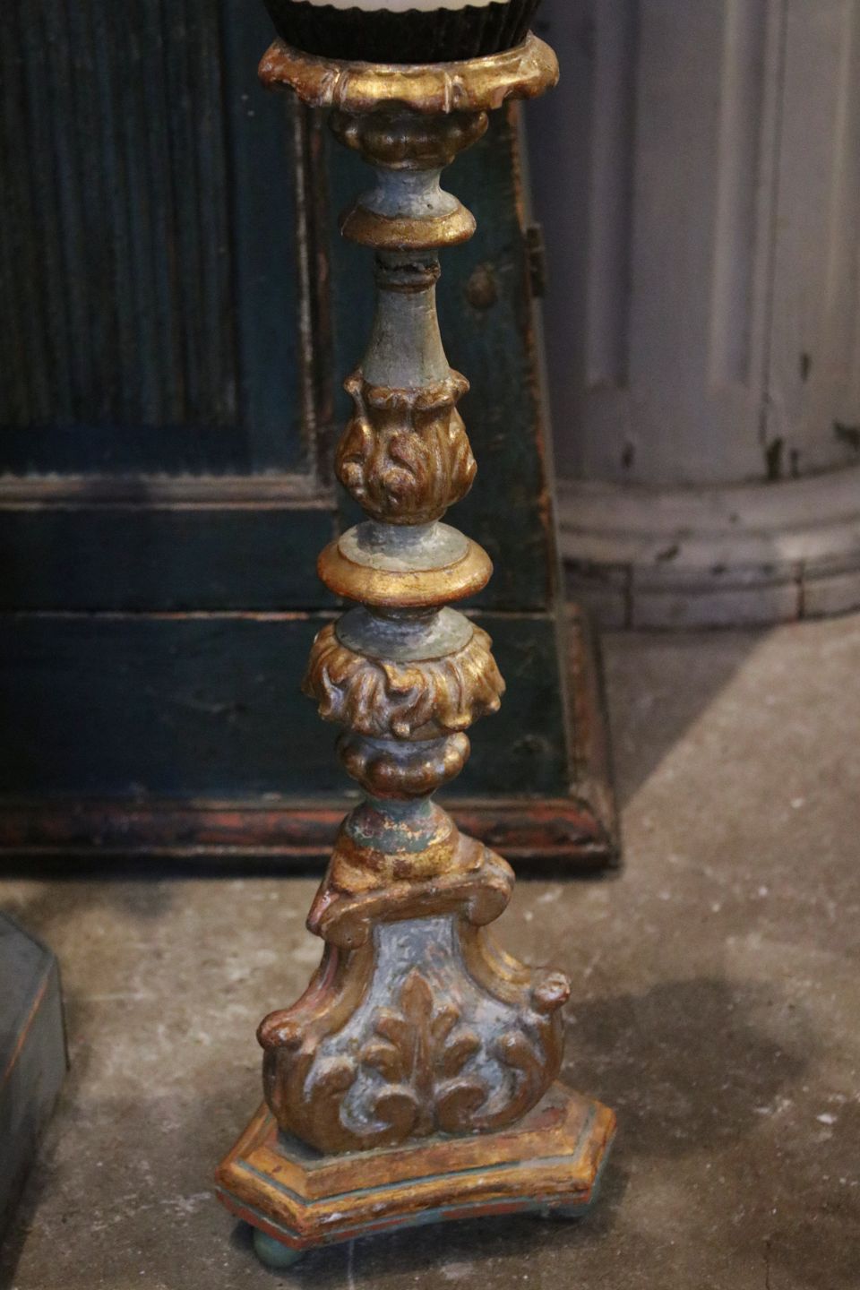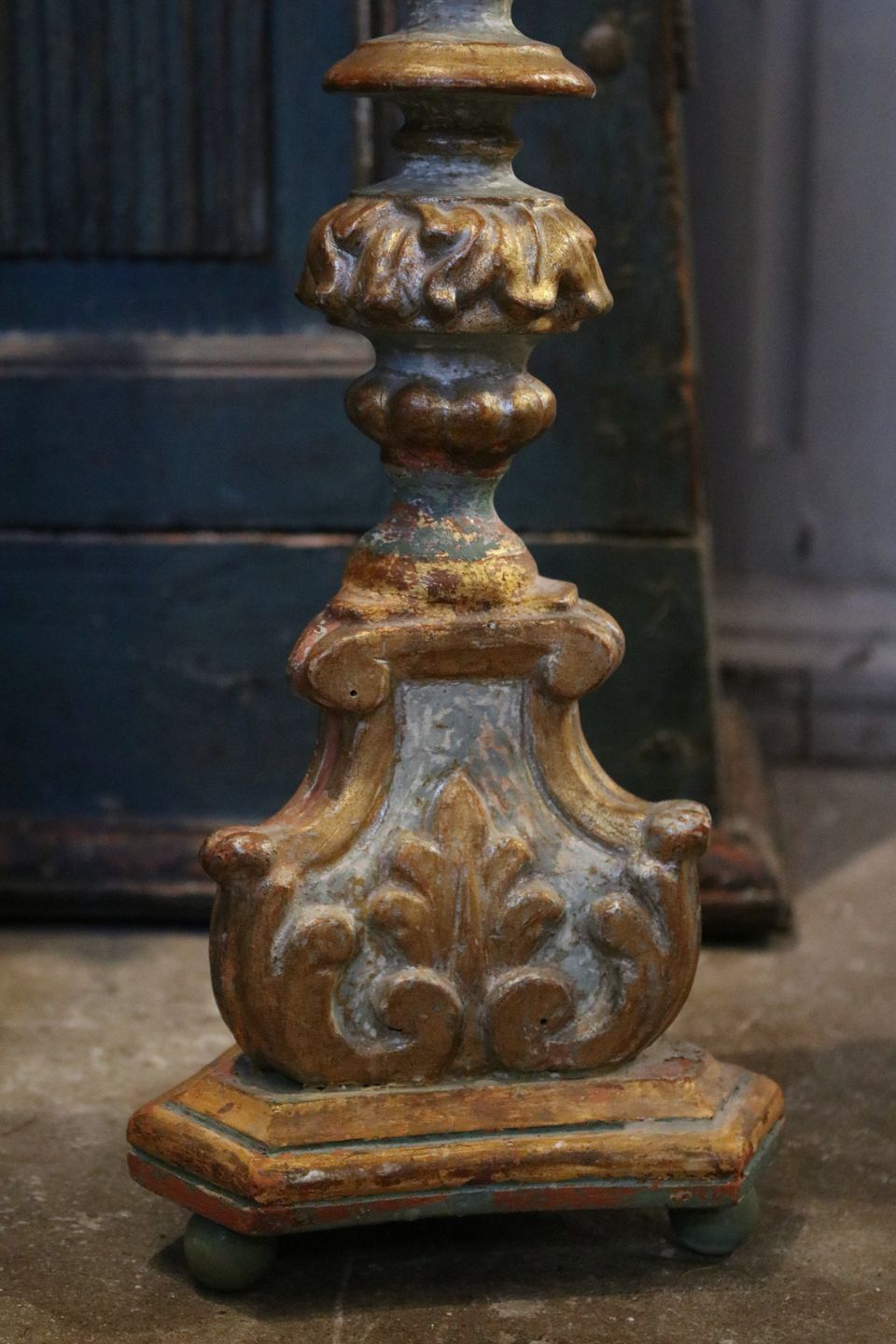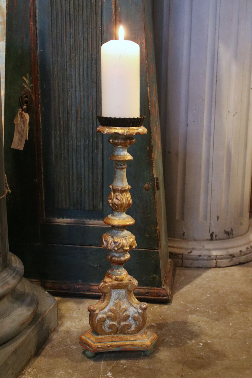Antik , fransk 1800 tals lysestage i udskåret træ