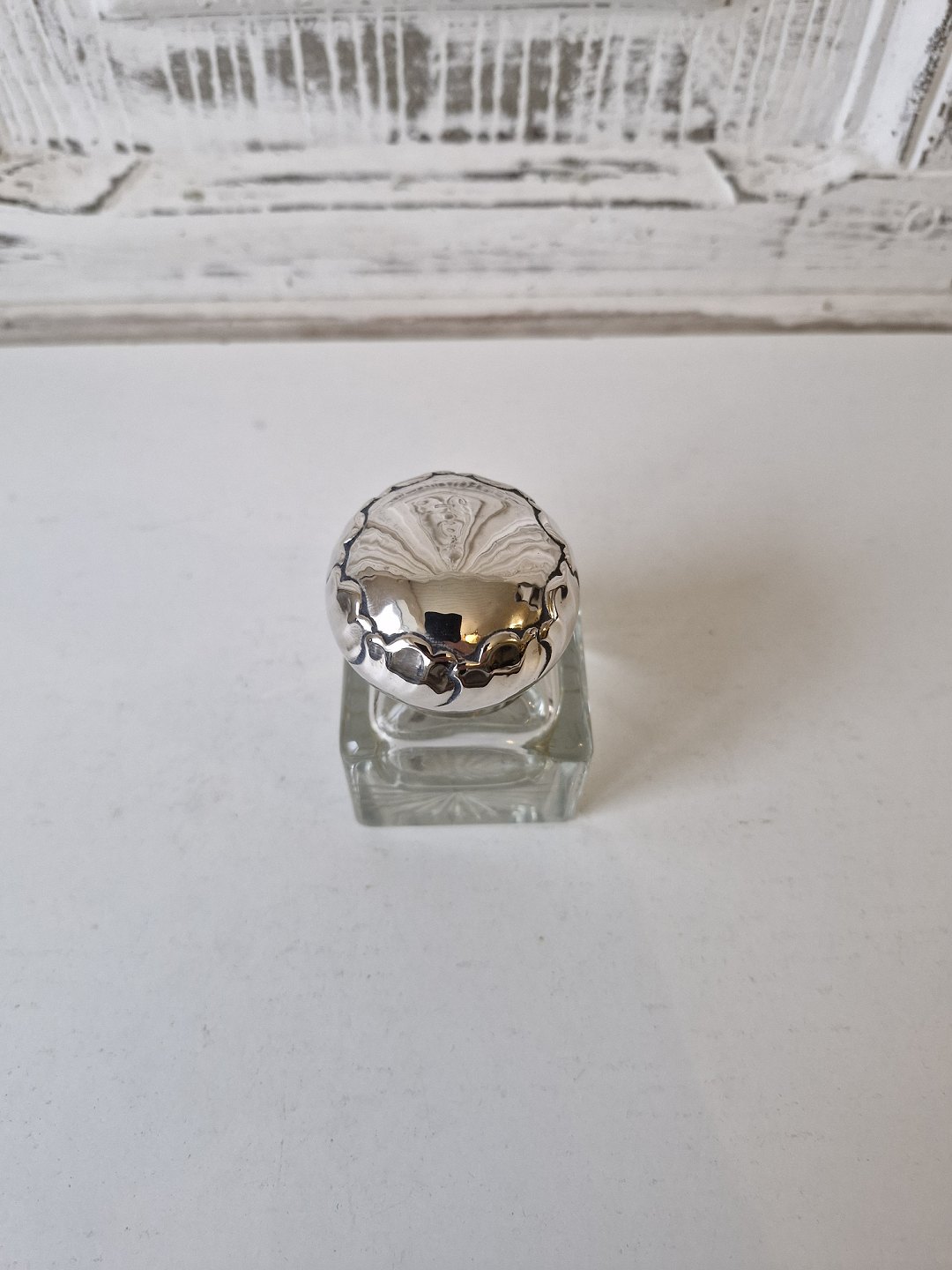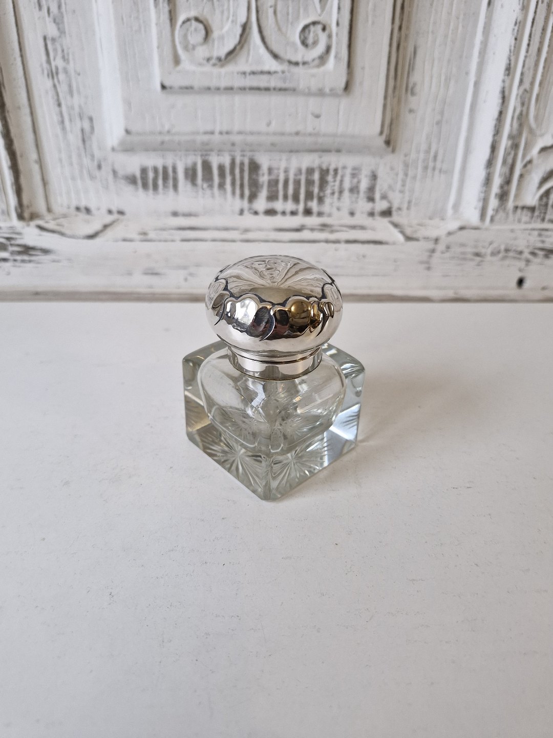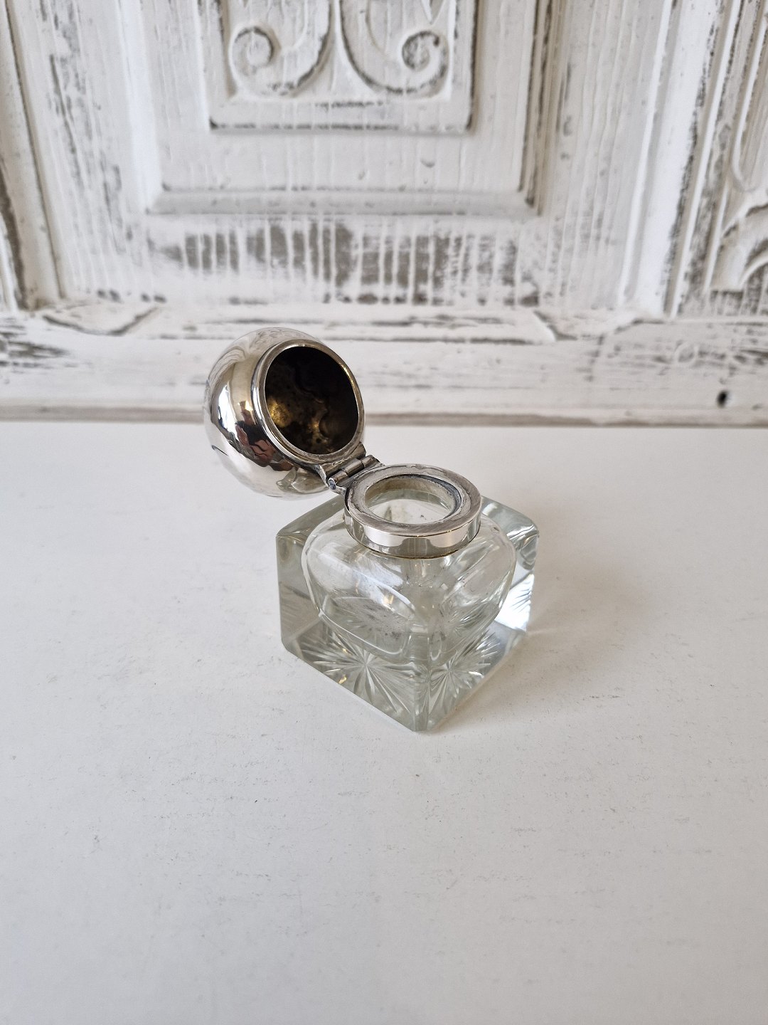 Blækhus i krystal med låg i sølv fra 1923