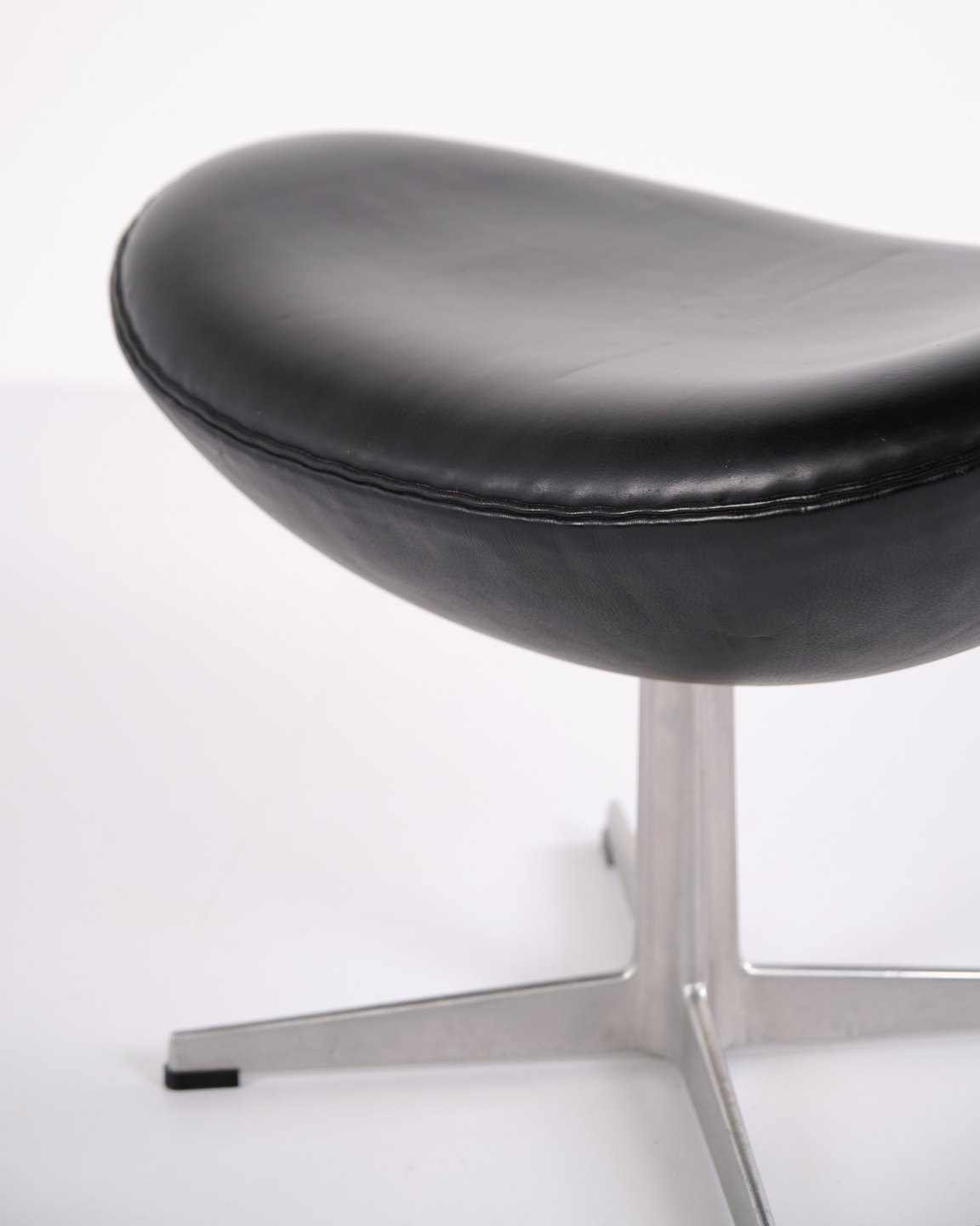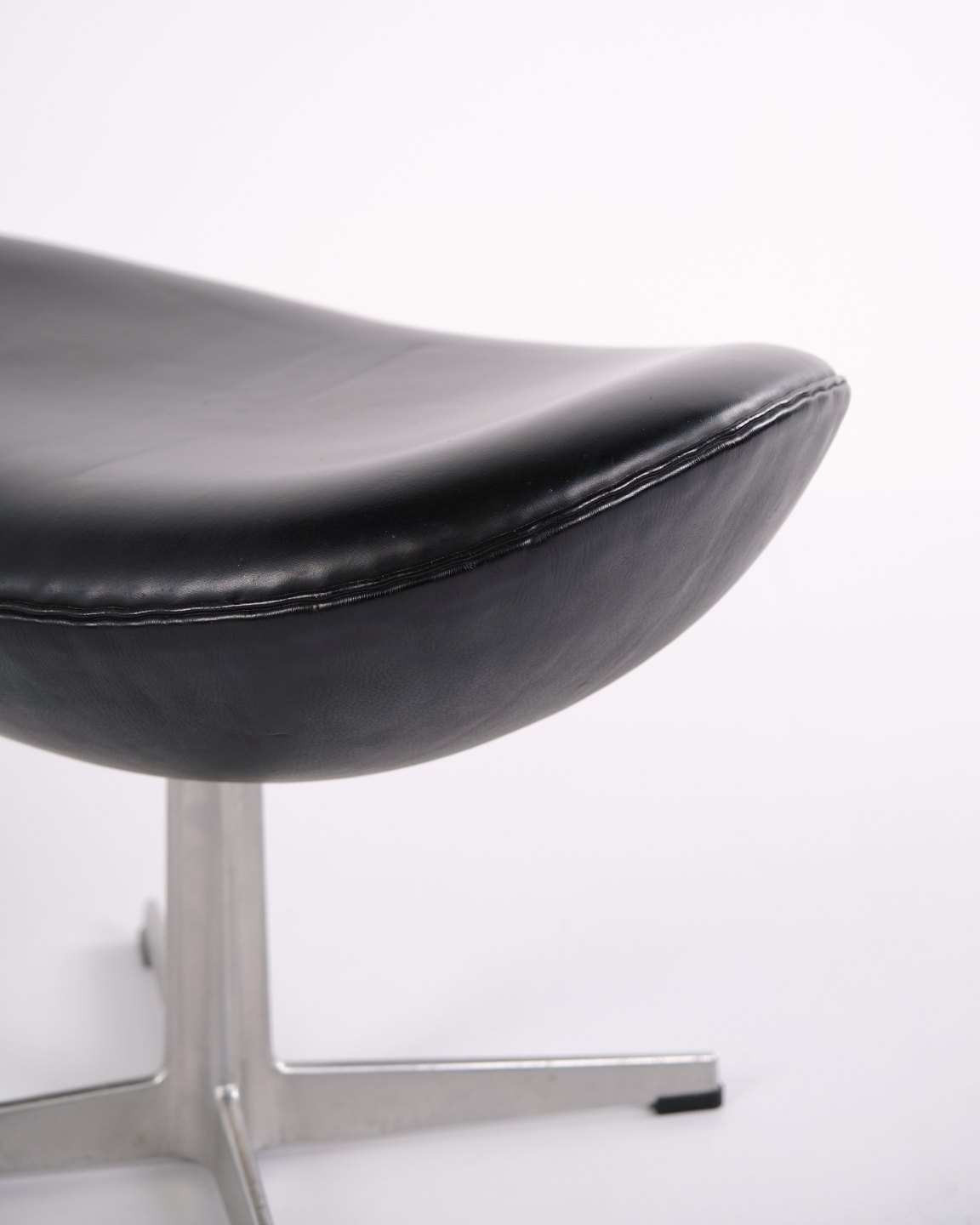 Skammel til Ægget, designet af Arne Jacobsen og produceret af Fritz Hansen i 2006. Betrukket med sort Elegance læder og monteret på aluminium stjernefod — samme høje kvalitet og opmærksomhed på detaljer som på originalmodellen. En diskret og solid tilføjelse, der gør stolen komplet og fuldender den elegante helhed.