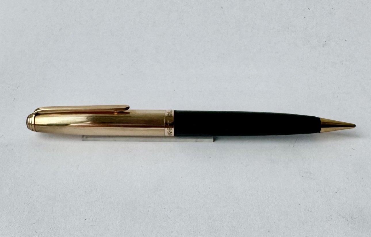 Sort Montblanc skrueblyant / stiftblyant / pencil med guld double top. I god og skriveklar stand. Længde 12,4 cm
