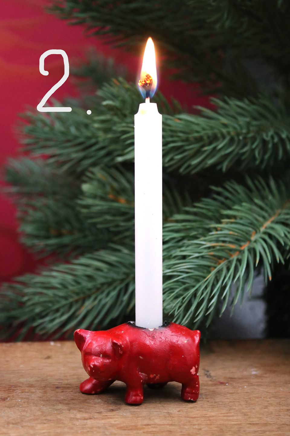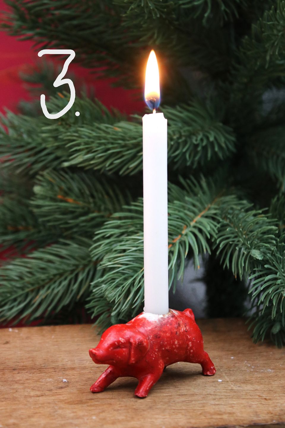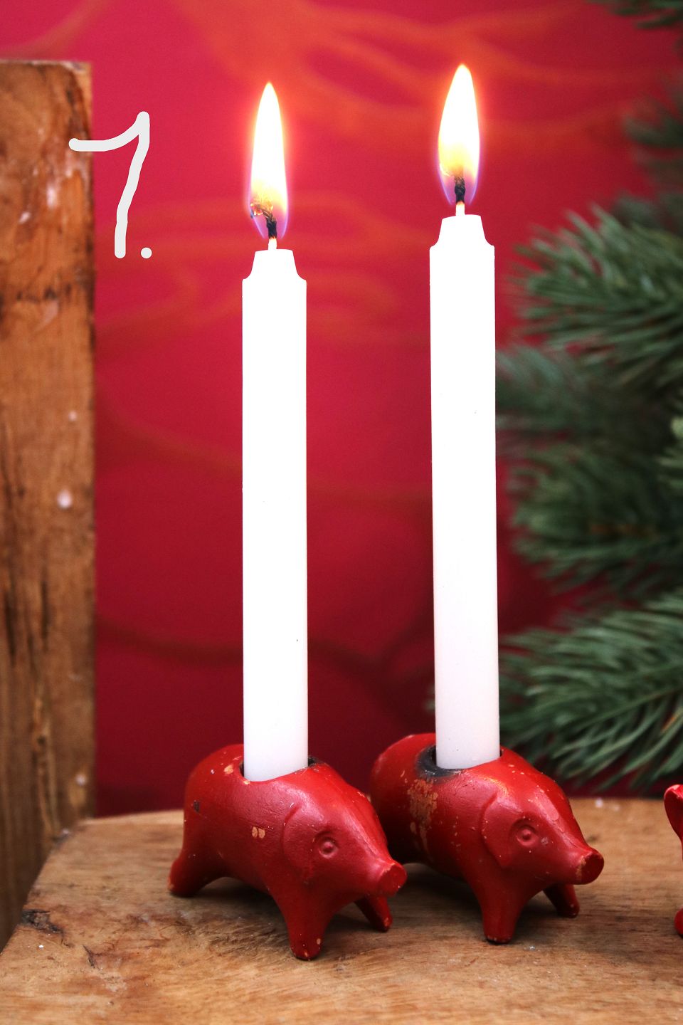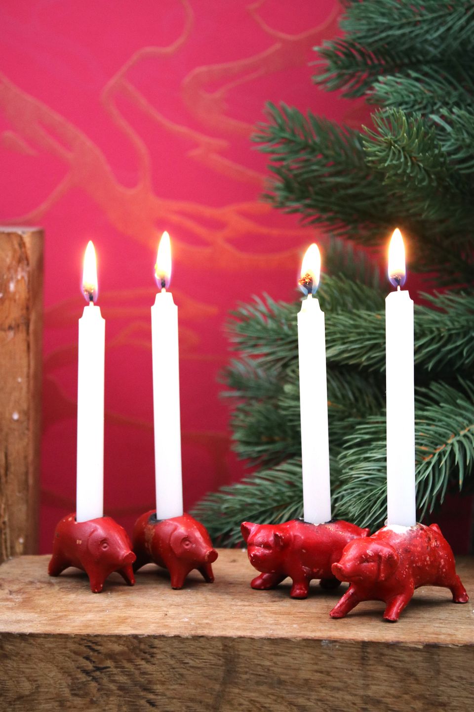 Gamle julegrise i bemalet porcelæn med plads til et lille julelys.