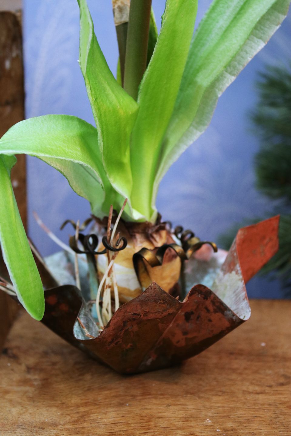 Kan bruges til et lille julestearinlys eller små husløg planter.