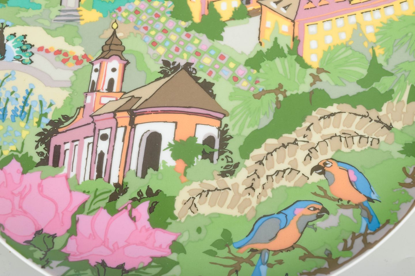 Sjælden Tallerken i porcelæn med farverigt motiv designet af Bjørn Wiinblad for Rosenthal. Inklusiv original æske.