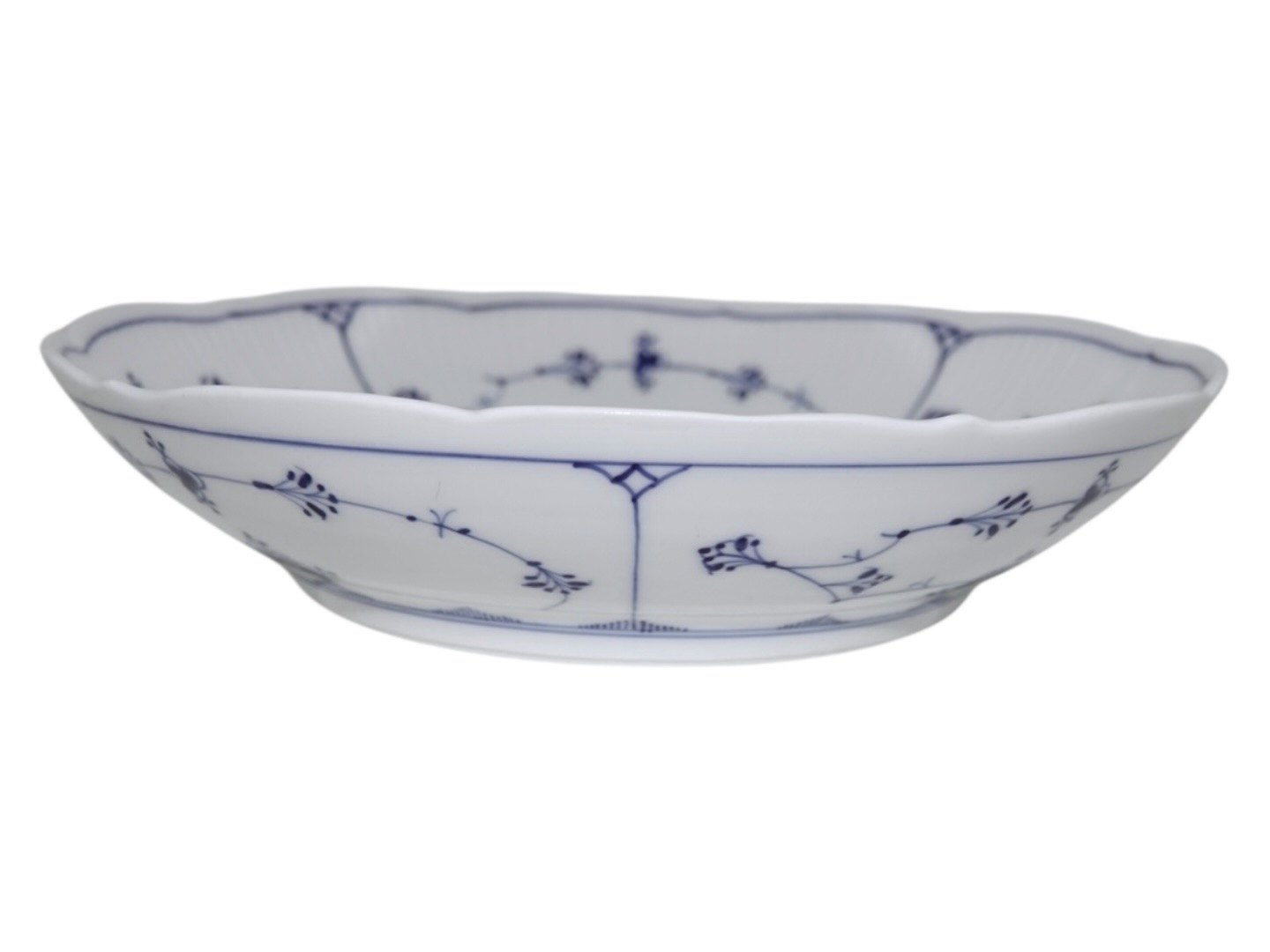 Royal Copenhagen Musselmalet Riflet, rund, lav skål med bølget kant.