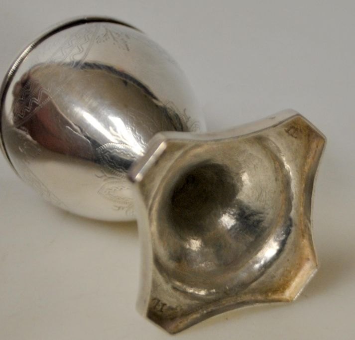 Dansk empire peberbøsse i sølv, 1841. Stemplet: IL. Med guirlande dekorationer. Højde.: 11,5 cm. Med inskription: Erich Christian Bruhn V. Lügum 1841.