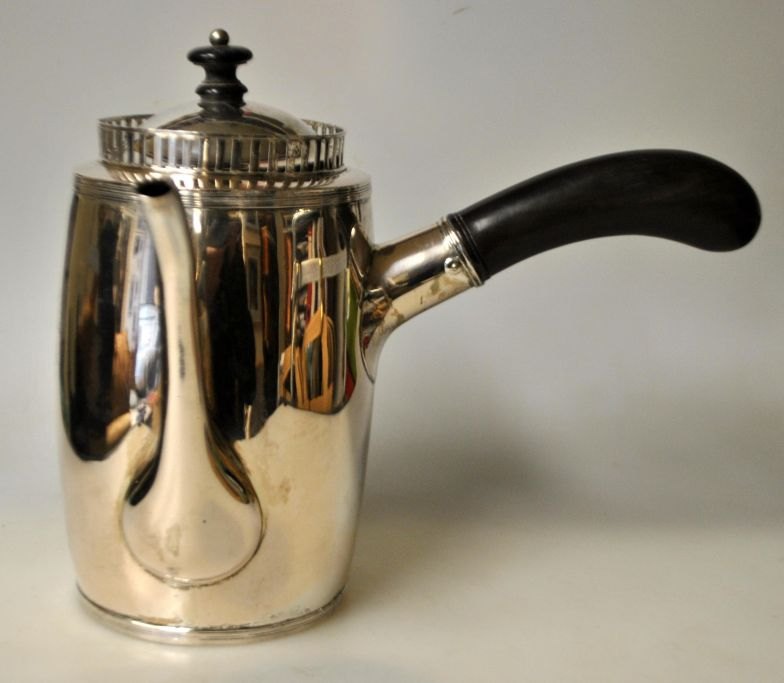 Martin Hinrich Petersen (1756 - 1824) Haderslev, Danmark: Stjert empire kaffekande i sølv.